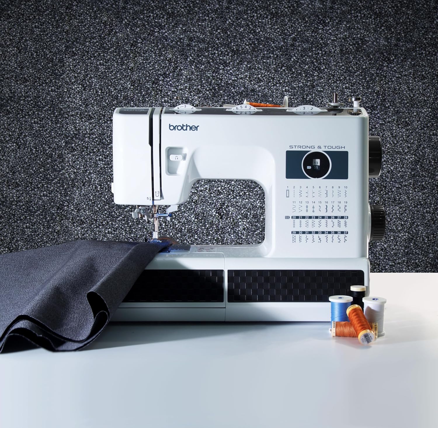 The ST371HD is a perfectly designed heavy duty sewing machine for those requiring flexibility and durability. This strong and durable sewing machine is a perfect machine for everyday sewing and mending on everything from thick outdoor fabrics to lightweight and elegant silks. The ST371HD includes a metal needle plate for smoother fabric feeding and heavyweight needles. The 37 utility and decorative stitches for blind hems stretch stitches buttonholes zipper insertion and more gives this exceptional sewing machine even more value.