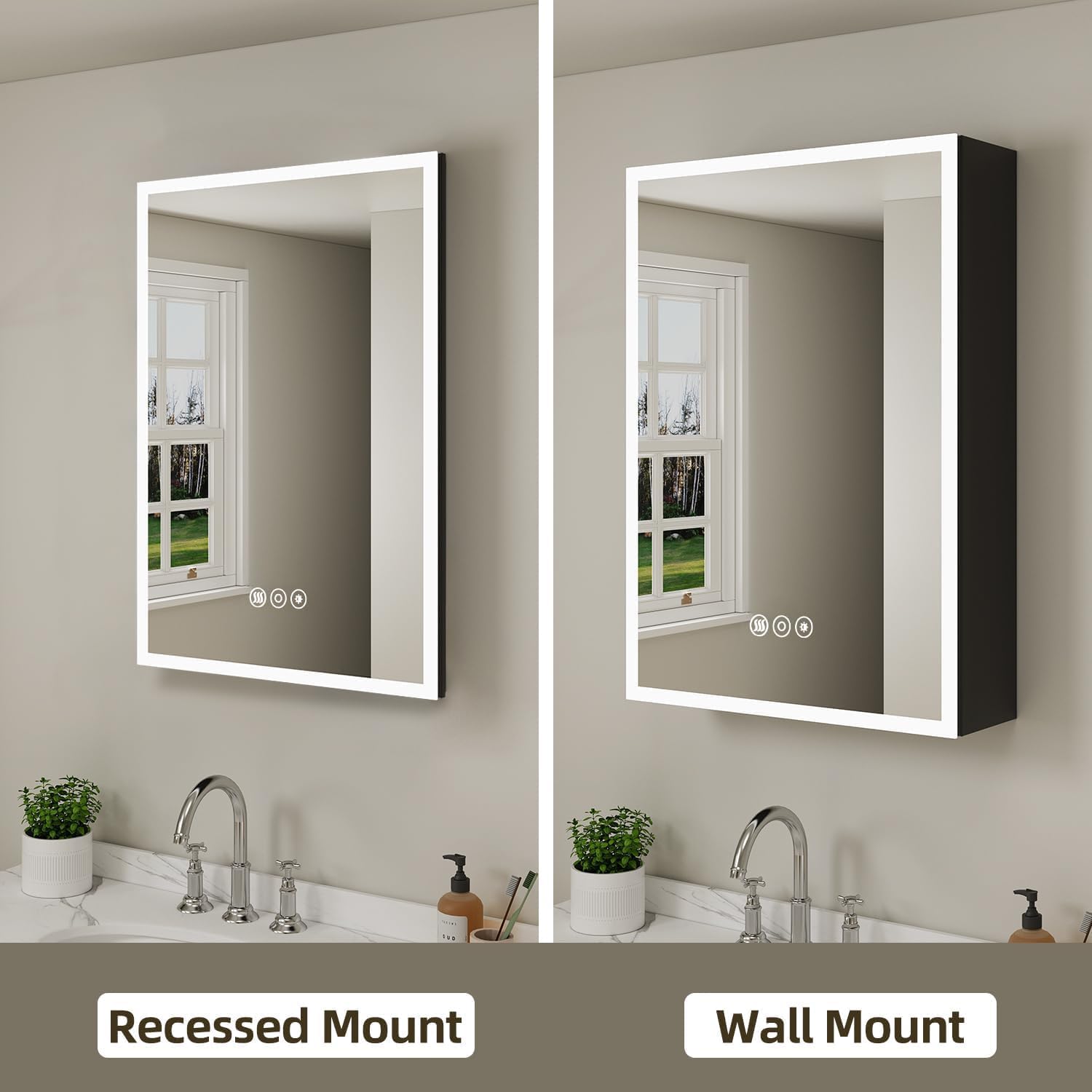 Memory Function: The Hkcvv medicine cabinet has a smart system to record your last settings for light brightness color temperature and time & temperature display. All your settings remain without any reset