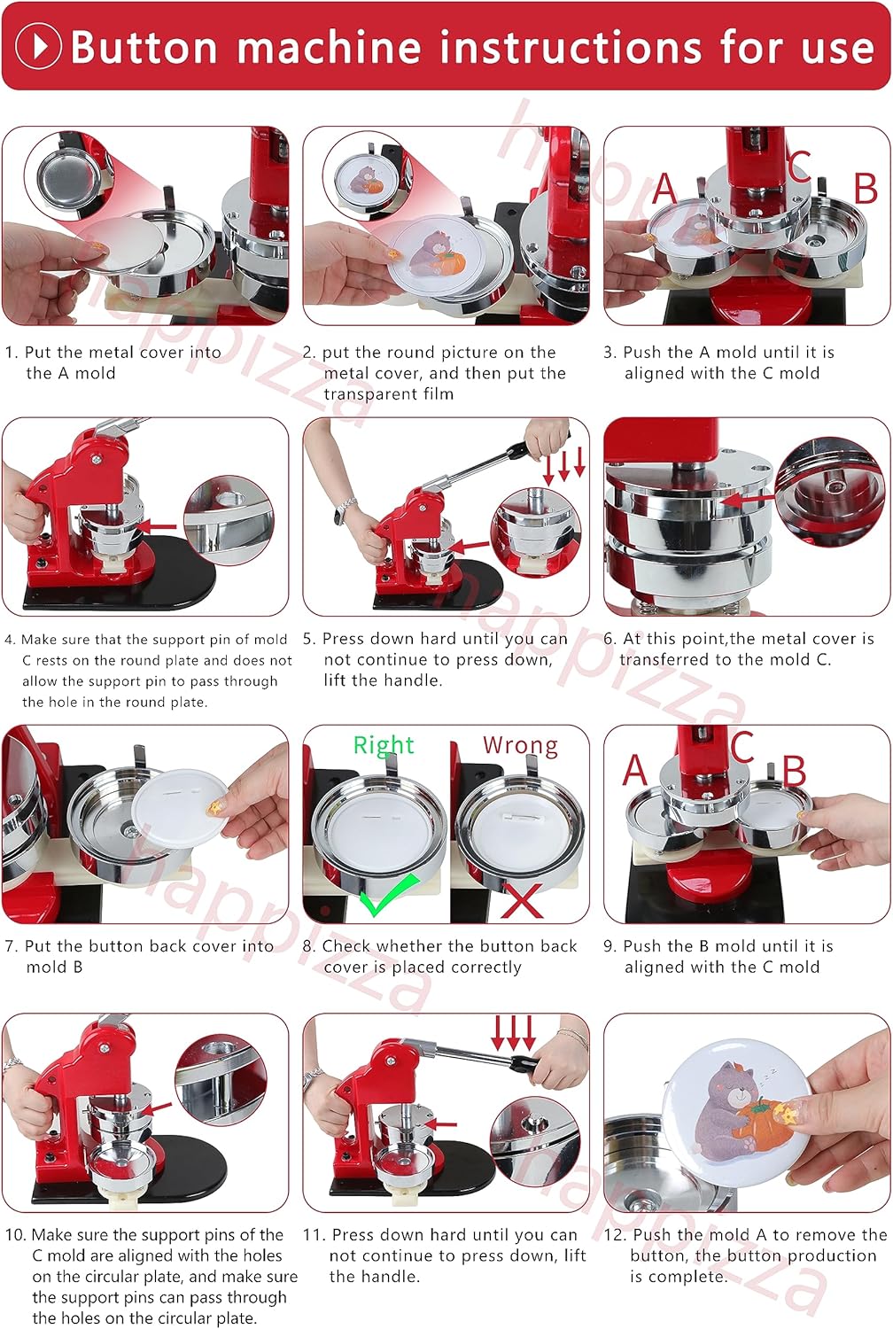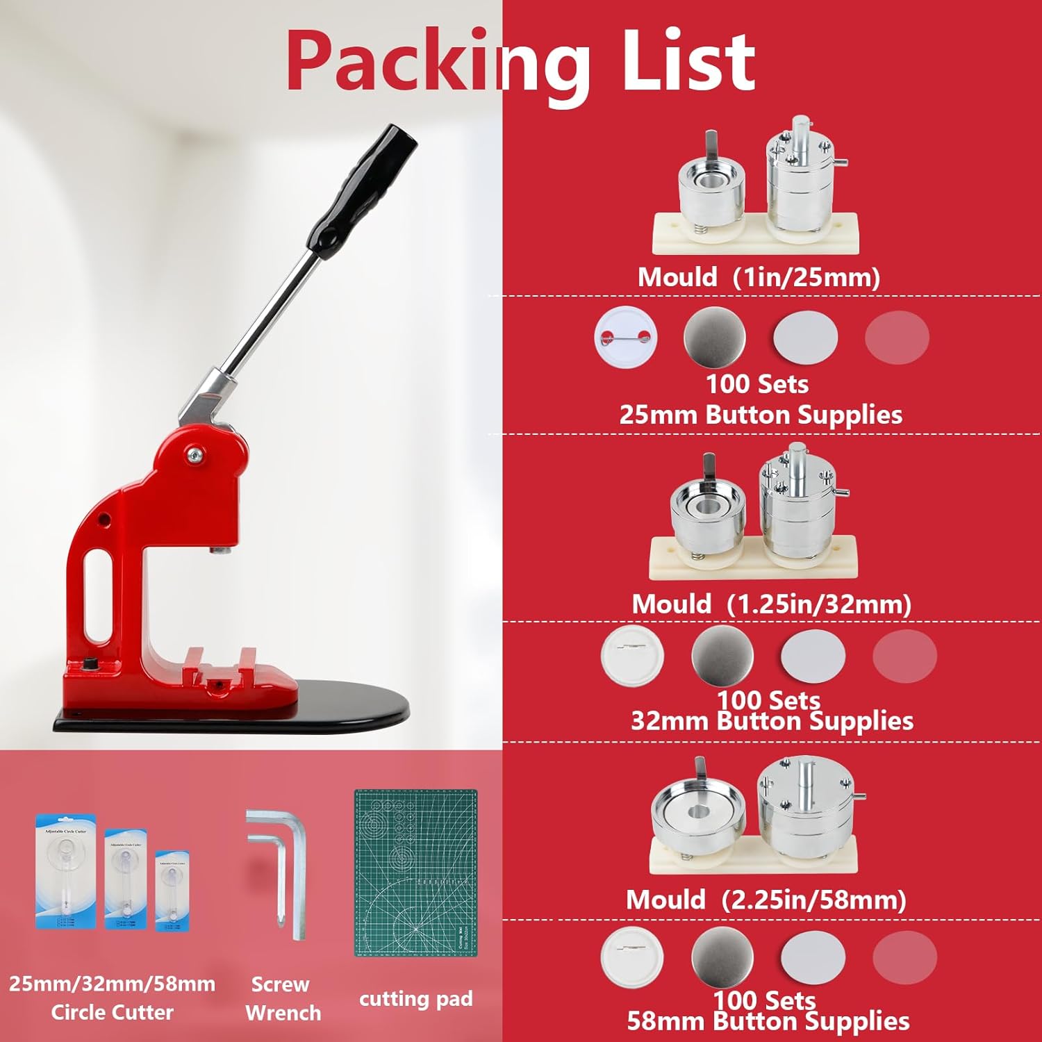 Sturdy and Durable Button Machine for All SizesOur button press machine kit comes with 2 replaceable button-models 32mm and 58mm to meet your needs of different sizes. You can also buy button-models of other sizes to install and use separately. With this button making machine you own the button world.