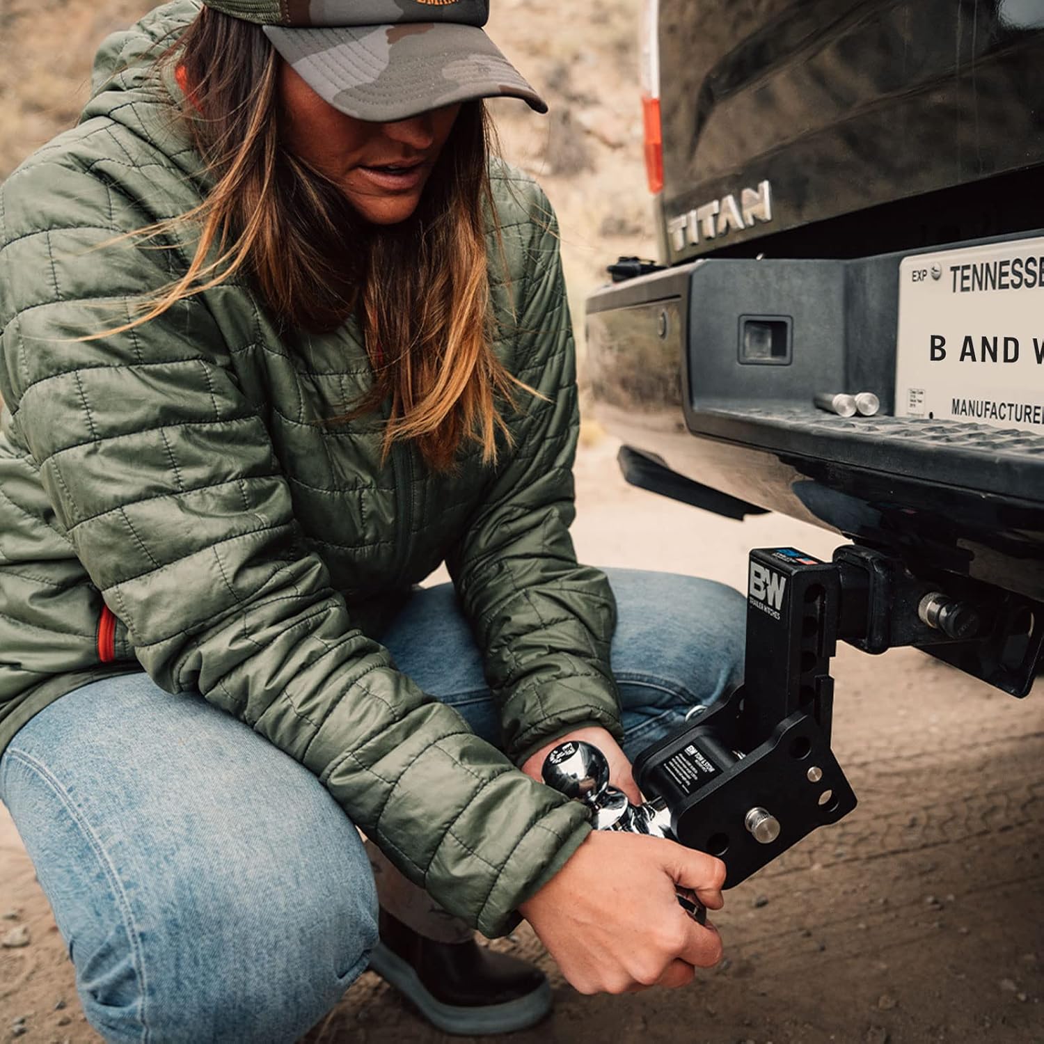 AMERICAN MADEThe Tow & Stow Adjustable Ball Mount Trailer Hitch is manufactured and assembled completely in Humboldt Kansas where we can oversee every detail. B&W's employee-owners stand behind each product we build and are proud of the Midwest values that have shaped our company into what it is today. We make only the best hitches and towing accessories so that you can focus on the road ahead and never worry about what's behind.