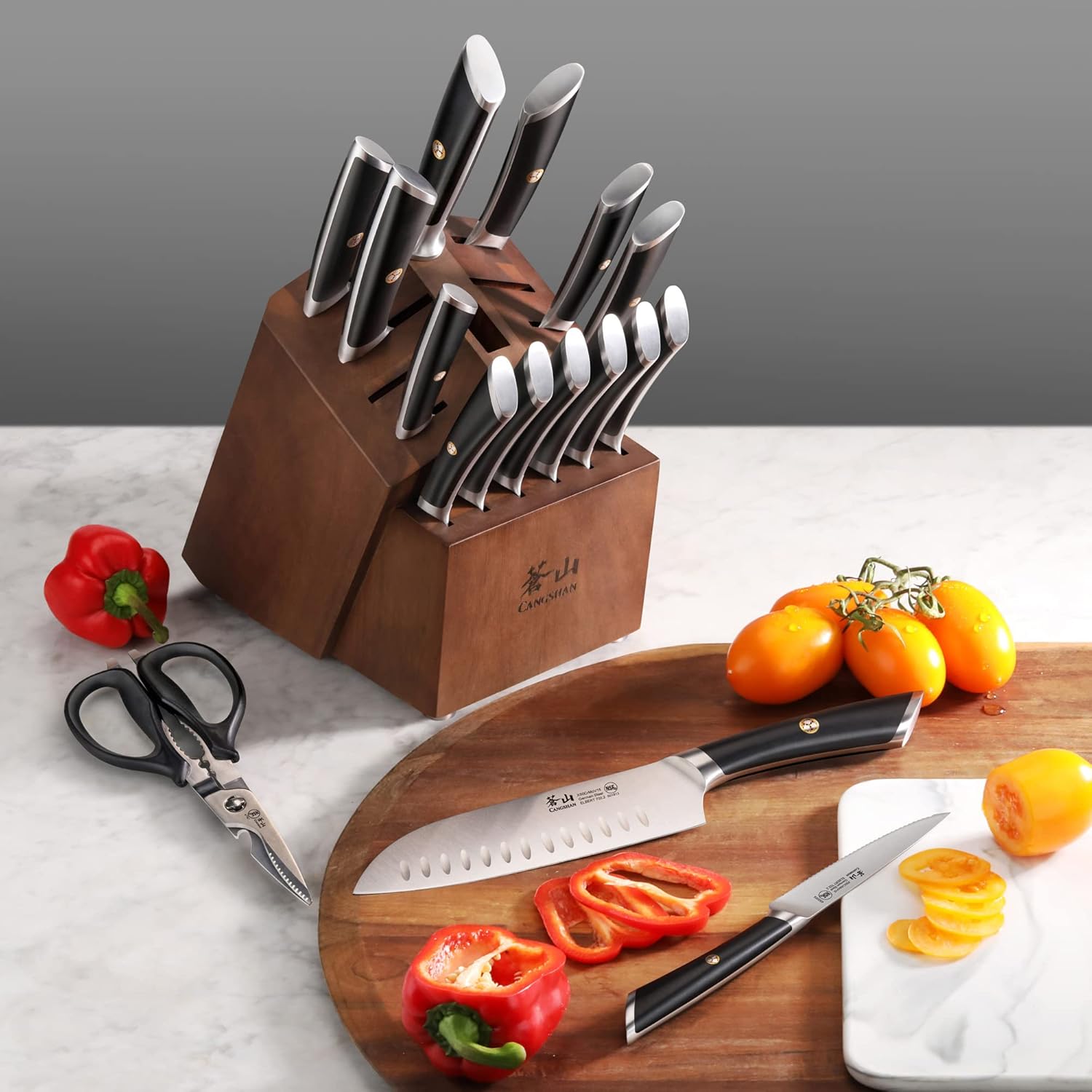• ELBERT Series German Steel Forged Knife Block Sets (17-Piece, Black)