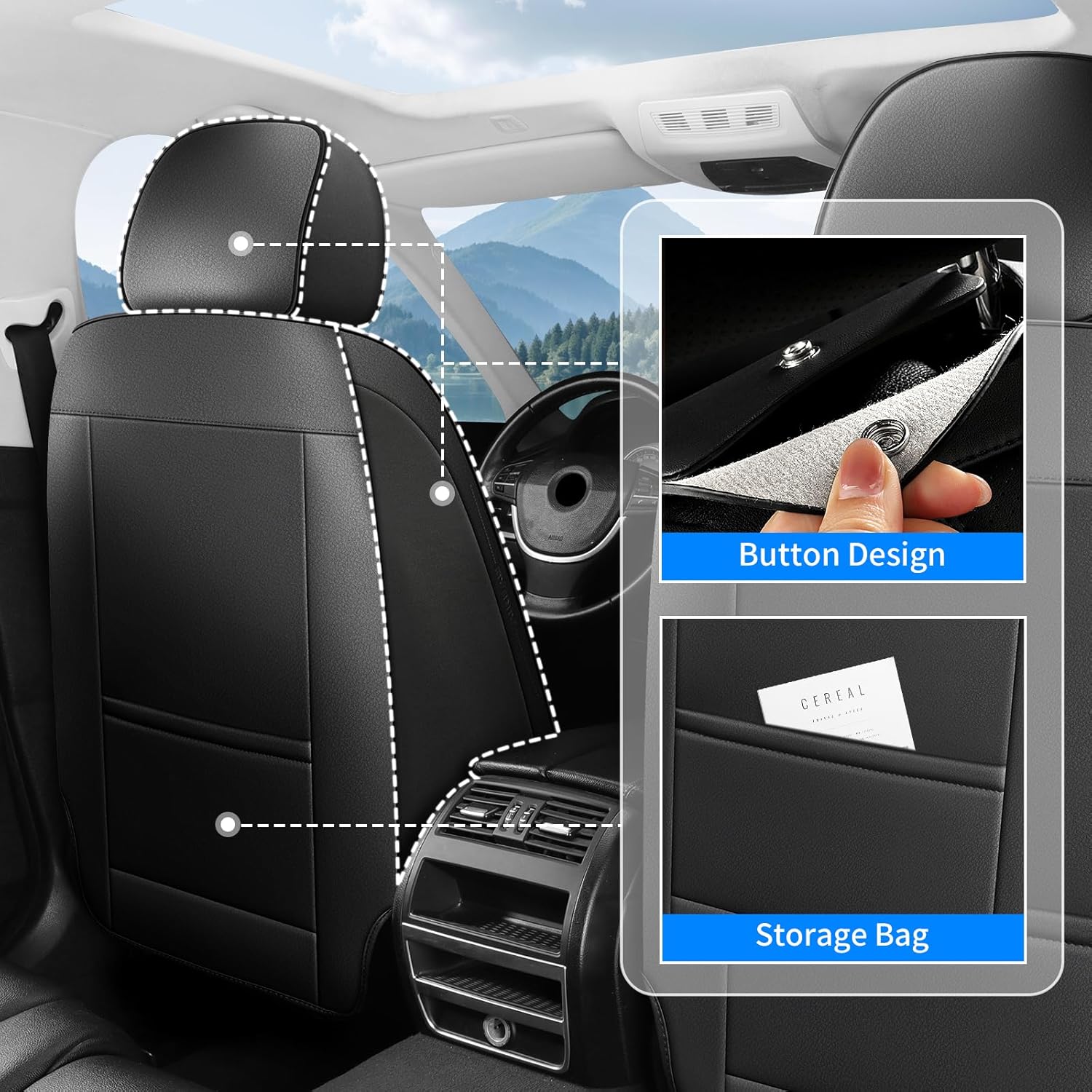 Easy to install: The leather car seat covers is simple to install with no tools required adjust the straps for our seat covers will stay in place and provide long lasting protection for your seats.