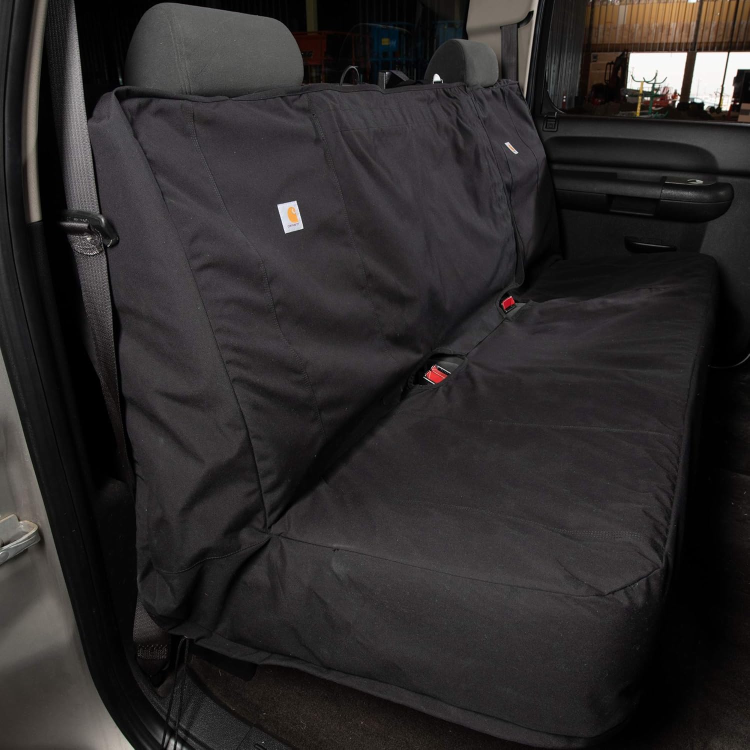 The reasons you wear to work are the same reasons you want protecting your car seats. Easy to install this bench seat cover helps protect your vehicle's interior from front to back. It has a durable CORDURA construction with Rain Defender and a universal fit. A rugged and reliable first line of defense against rips tears spills stains dirt and grime. A great way to help prolong the life of your car truck or SUV.