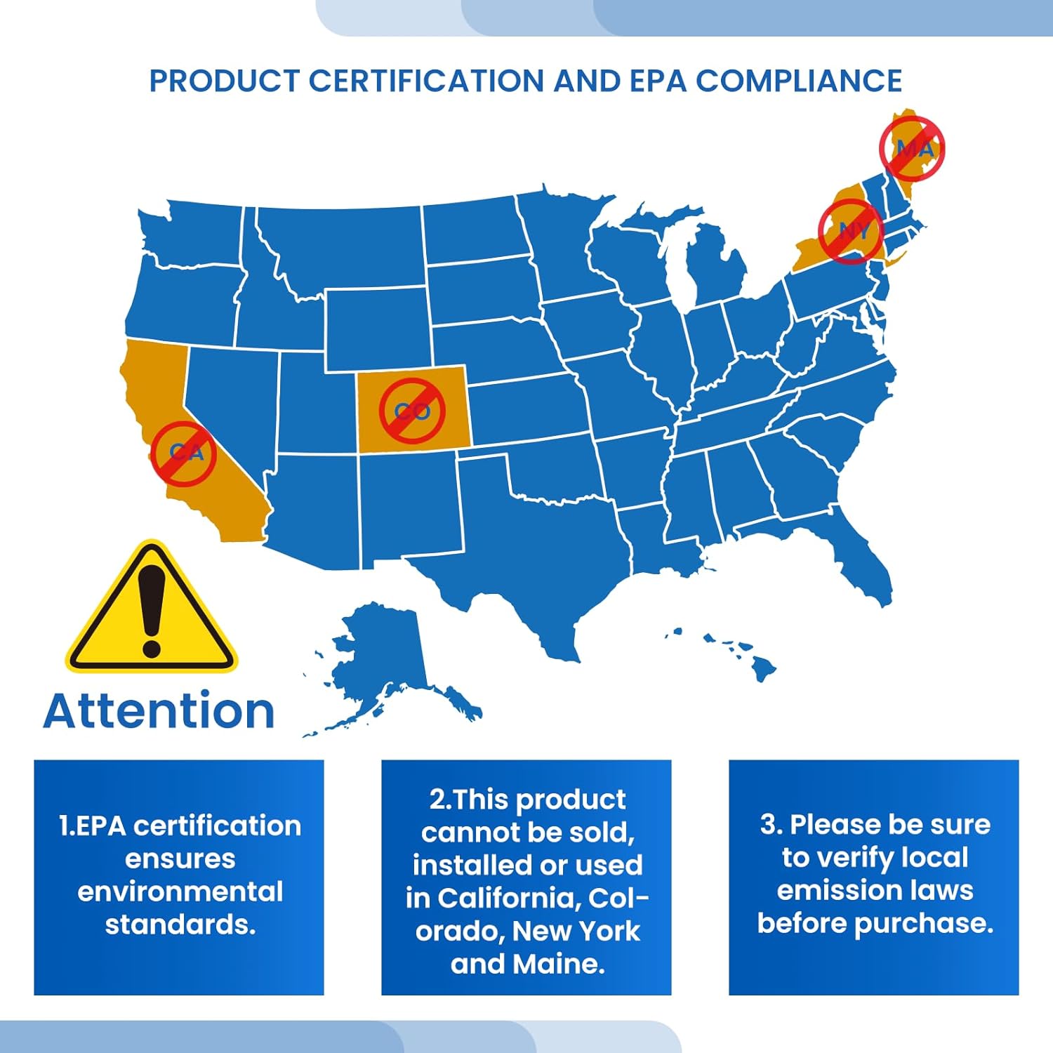 AttentionThis product approved by the U.S.EPA it is for vehicles meeting federal emission standards only. Selling installing or using it in California Colorado New York and Maine is illegal.