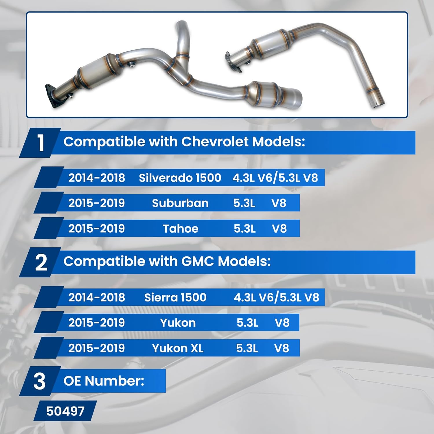 Reference Number#OEM PartNumber# 50497. Our catalytic converters are built to meet OEM specifications and have EPA certification.