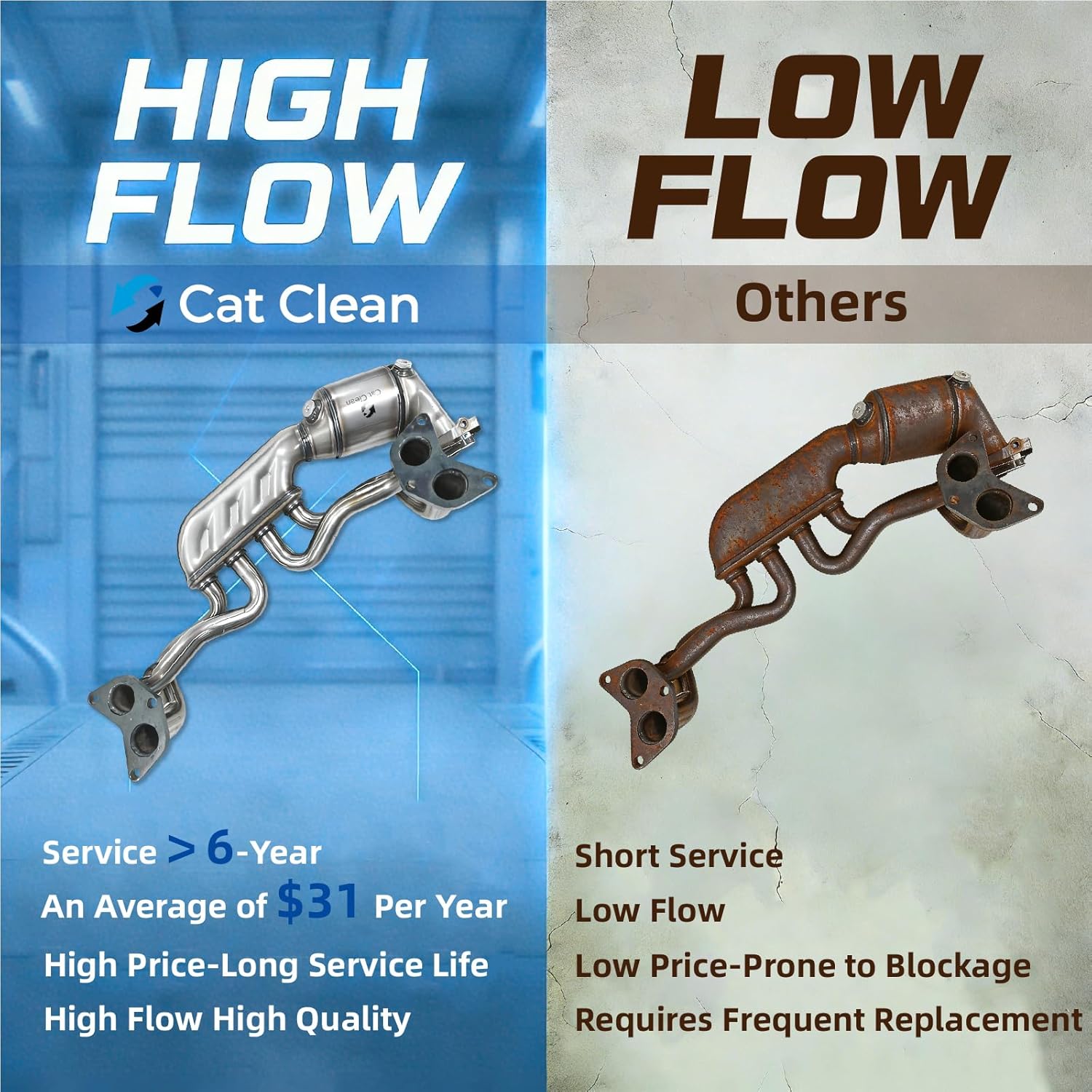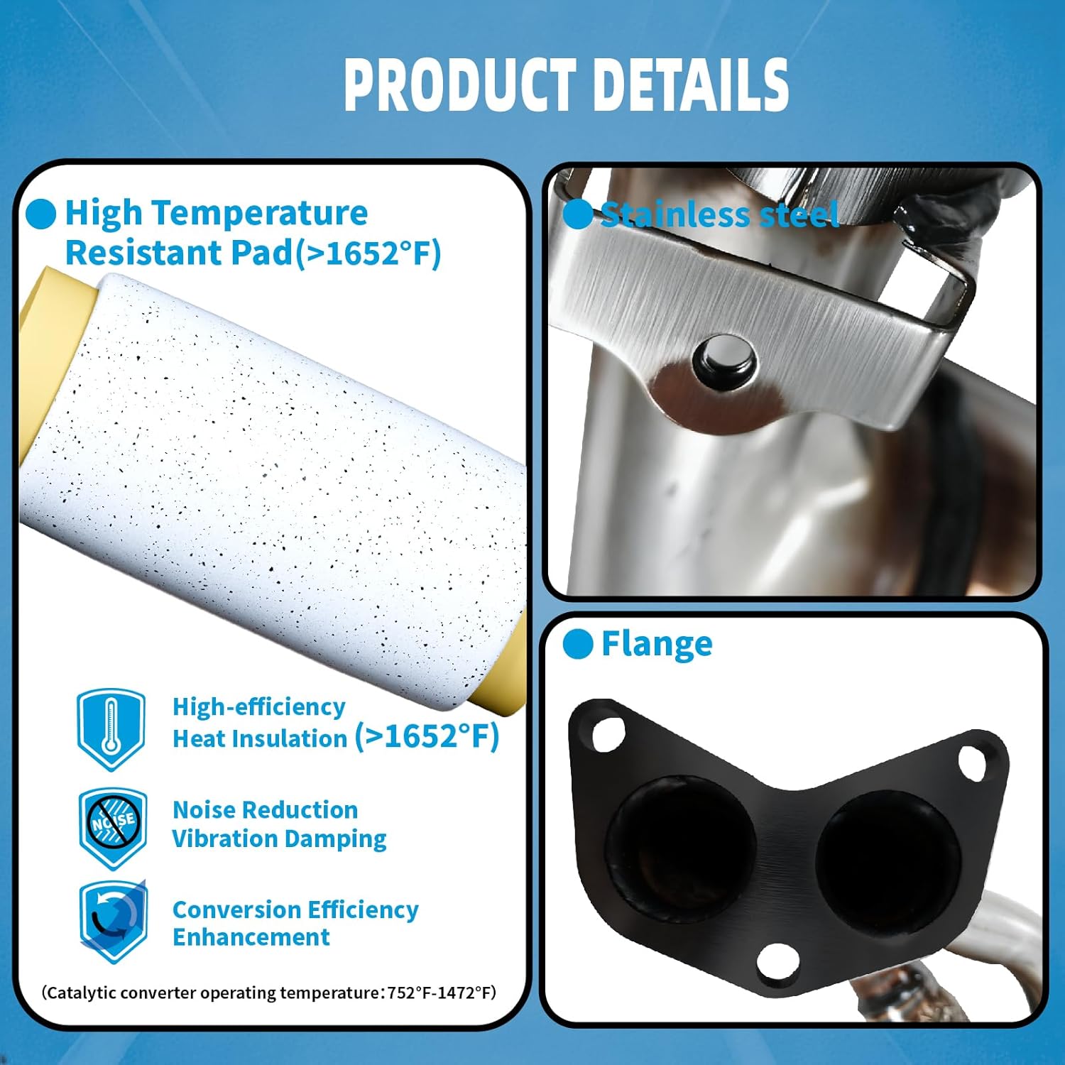 Longer ServiceCatalytic convert body is made of 409L stainless steel which has the characteristics of wear resistance corrosion resistance. A high-temperature resistant pad is adopted inside to protect the ceramic carrier ensuring long-lasting durability. catalytic convertors come with a 6-year/50000 mile performance warranty and our professional team will provide you with excellent products and services