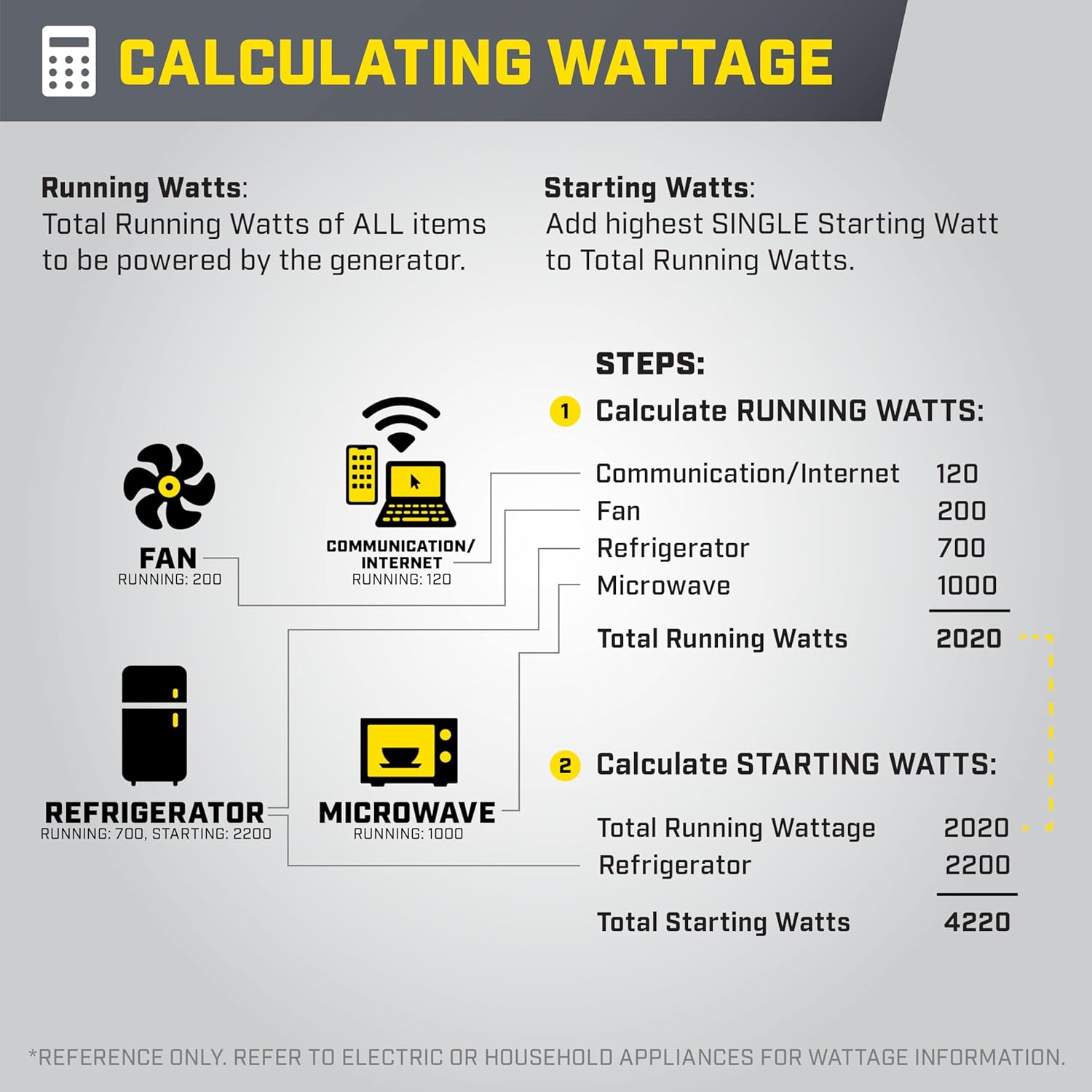 With an ultra-quiet 64 dBA from 23 feet enjoy 4000 starting watts 3000 running watts and up to 10 hours run time on gasoline and 2700 running watts and up to 25 hours on propane