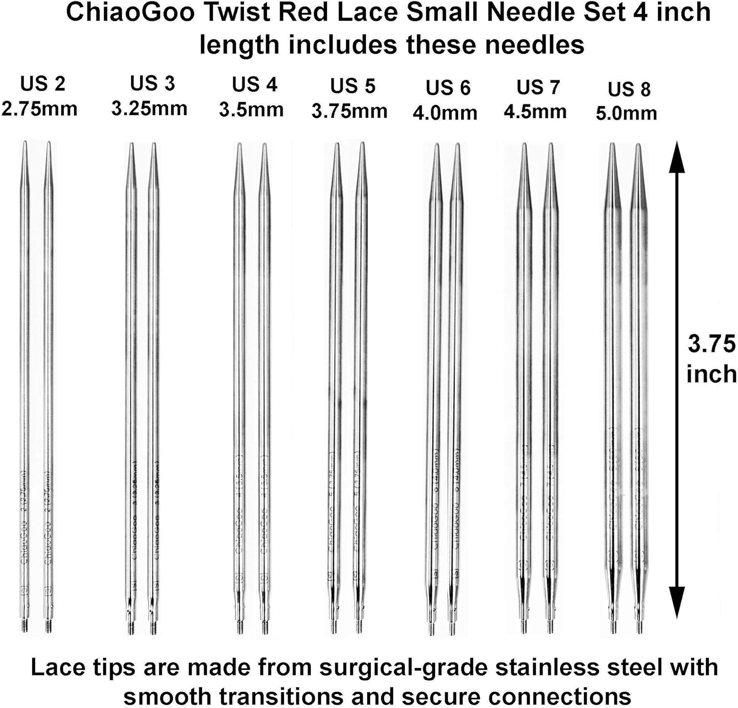 Set also includes 2 cord keys needle gauge and 12 stitch markers (6 units of 2 styles) and a convenient cloth carry case