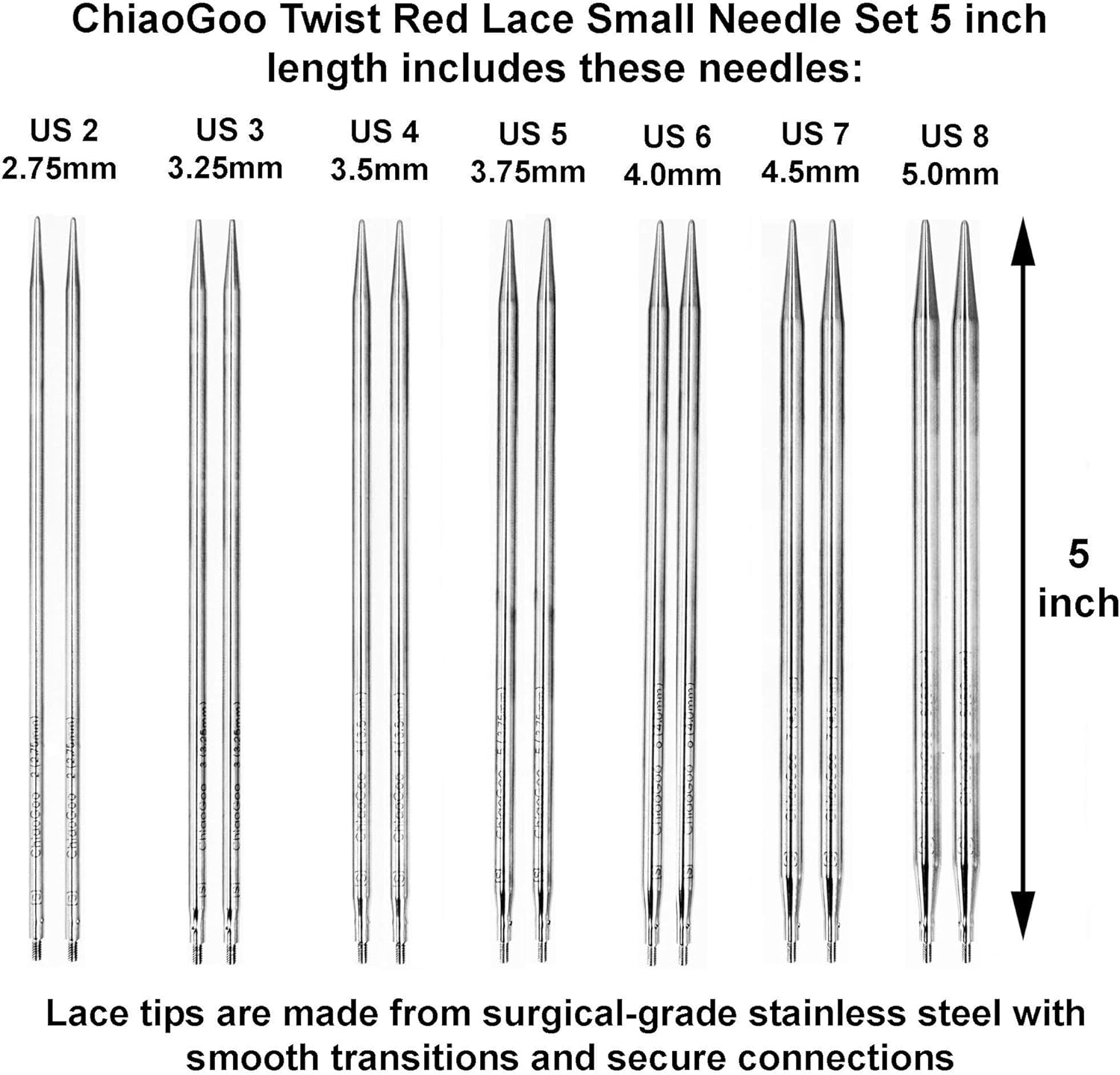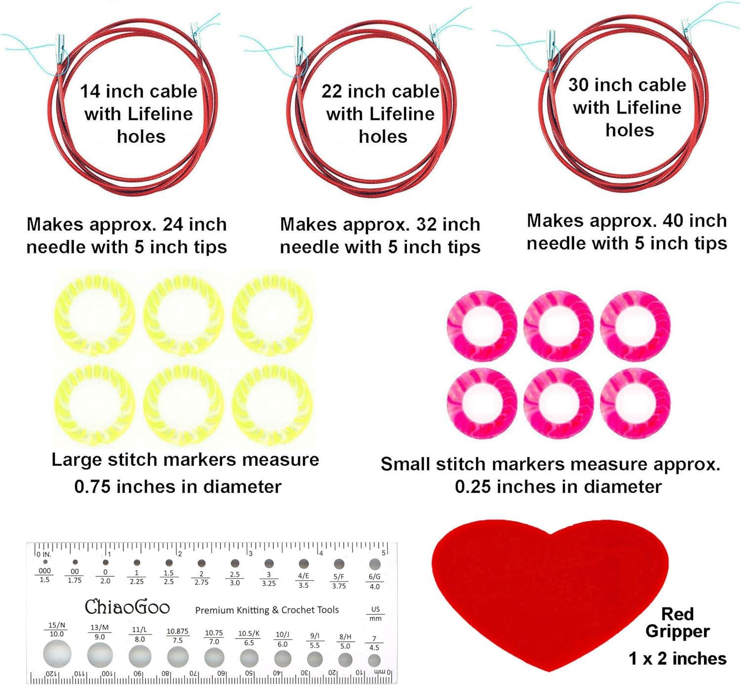 Set also includes 2 cord keys needle gauge and 12 stitch markers (6 units of 2 styles) and a convenient cloth carry case