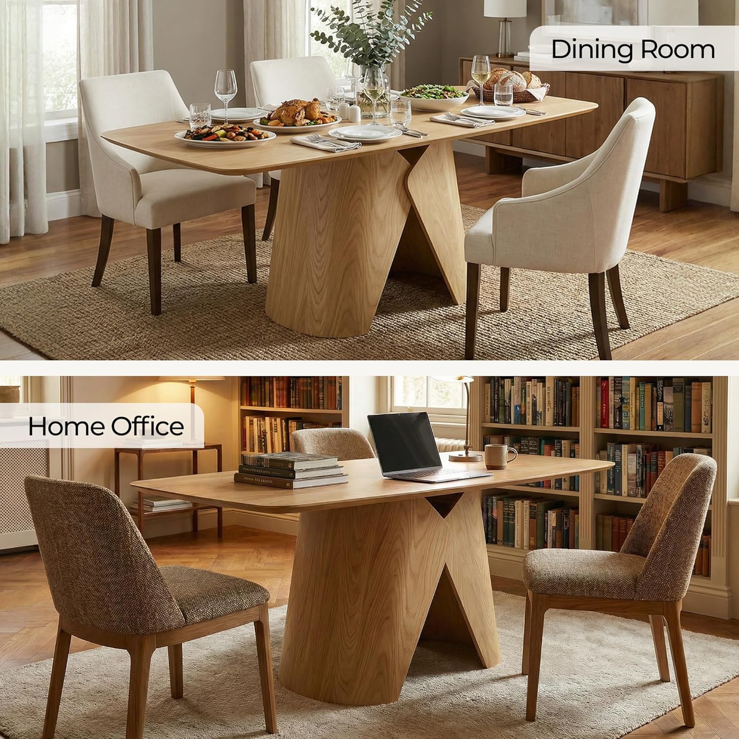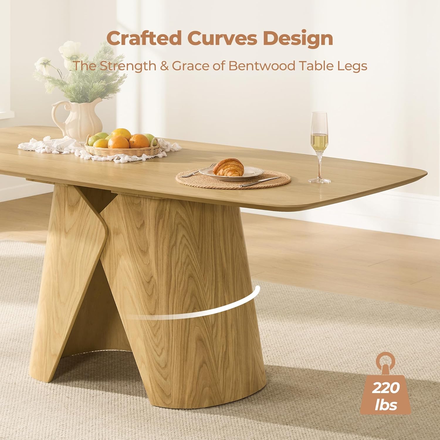 Space Versatility: Fits beautifully in multiple spacesperfect for dining rooms, apartments, loft kitchens, or as a home office desk or entryway console. Available in Oak and Walnut finishes to match your decor. Its clean lines and natural wood grain add warmth to modern or industrial styles, while the sculptural bendwood leg brings an artistic touch that elevates any room.