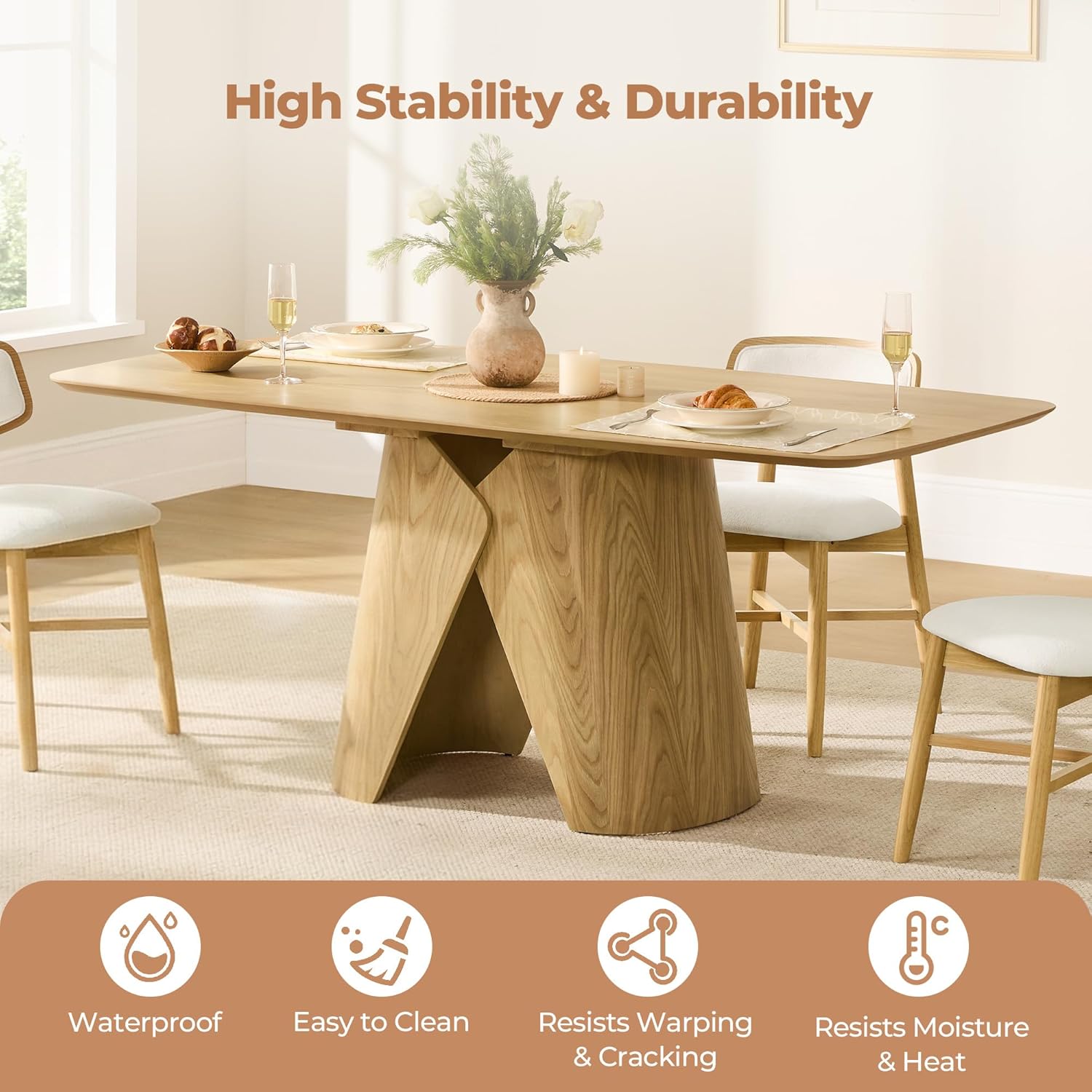 Build & Sturdiness: Crafted for lasting strength, this table features a scratch-resistant MDF core with authentic walnut or oak veneer, paired with a sturdy bendwood leg. The curved base locks firmly to evenly distribute weight, ensuring steady, wobble-free use. The smooth, durable surface maintains a clean, modern look even with daily use.