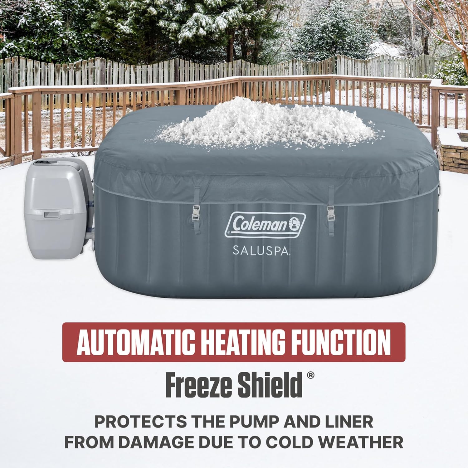 Durable Construction: MaxHold fabric internal beams provide superior air pressure retention stability and lightweight portability. Surrounded by a 3-layer Tritech outer layer this hot tub is proven to be puncture- and damage-resistant. Freeze Shield automatic heating function protects pump and liner from damage due to cold weather.