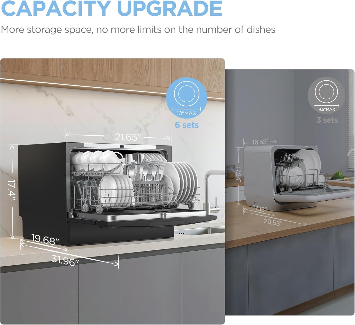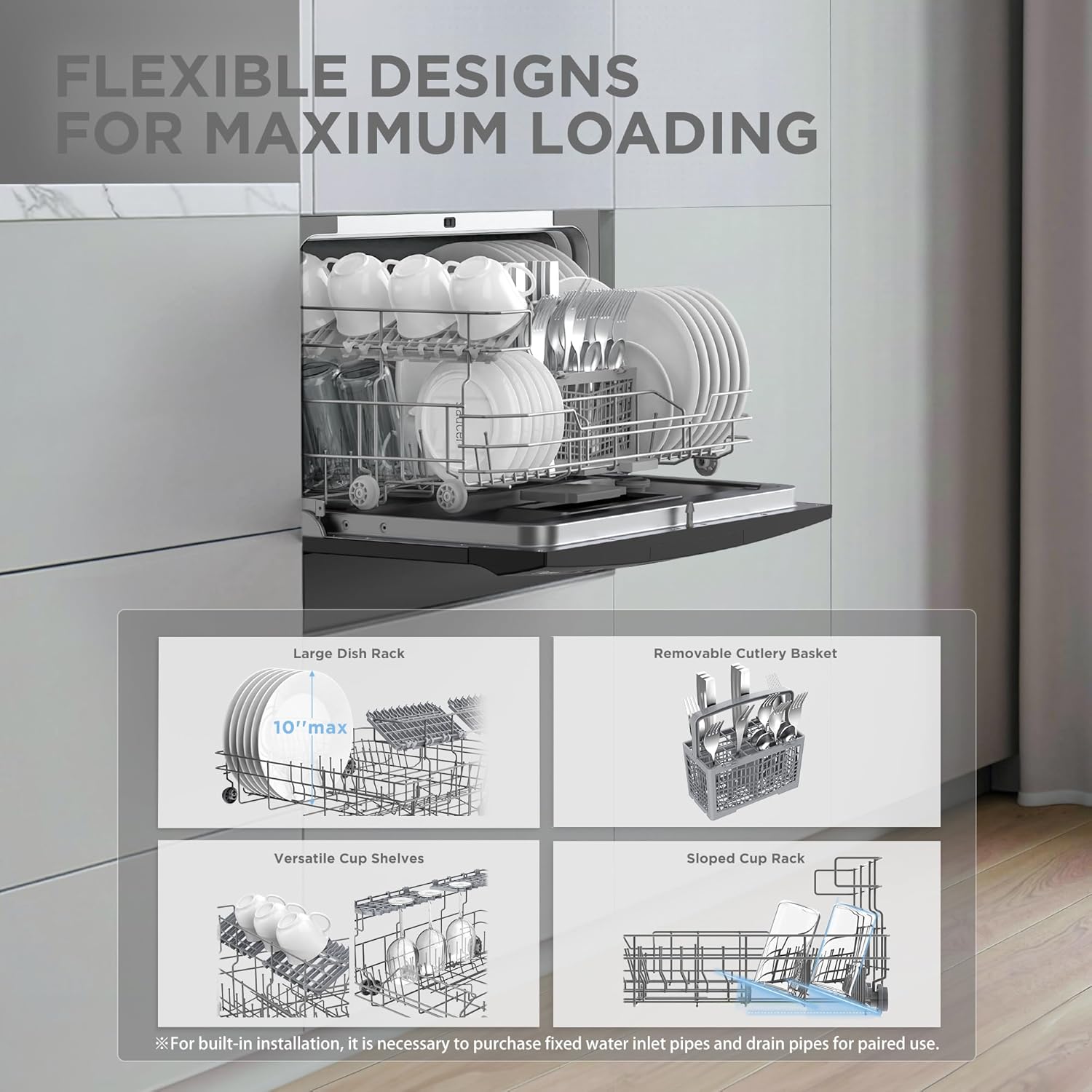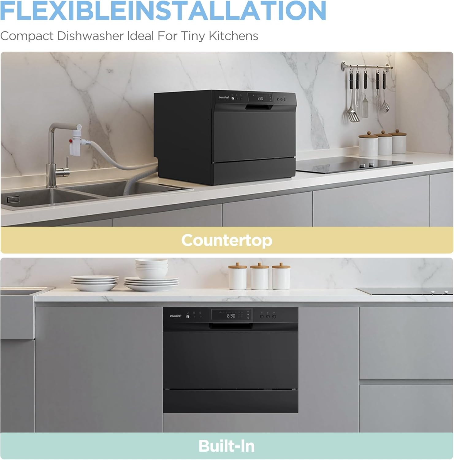 Simple Installation- portable dishwasher can be connected to faucet directly (Suitable adaptor needed). Depending on your needs it can be flexibly placed on the table or fitted in the cupboard.