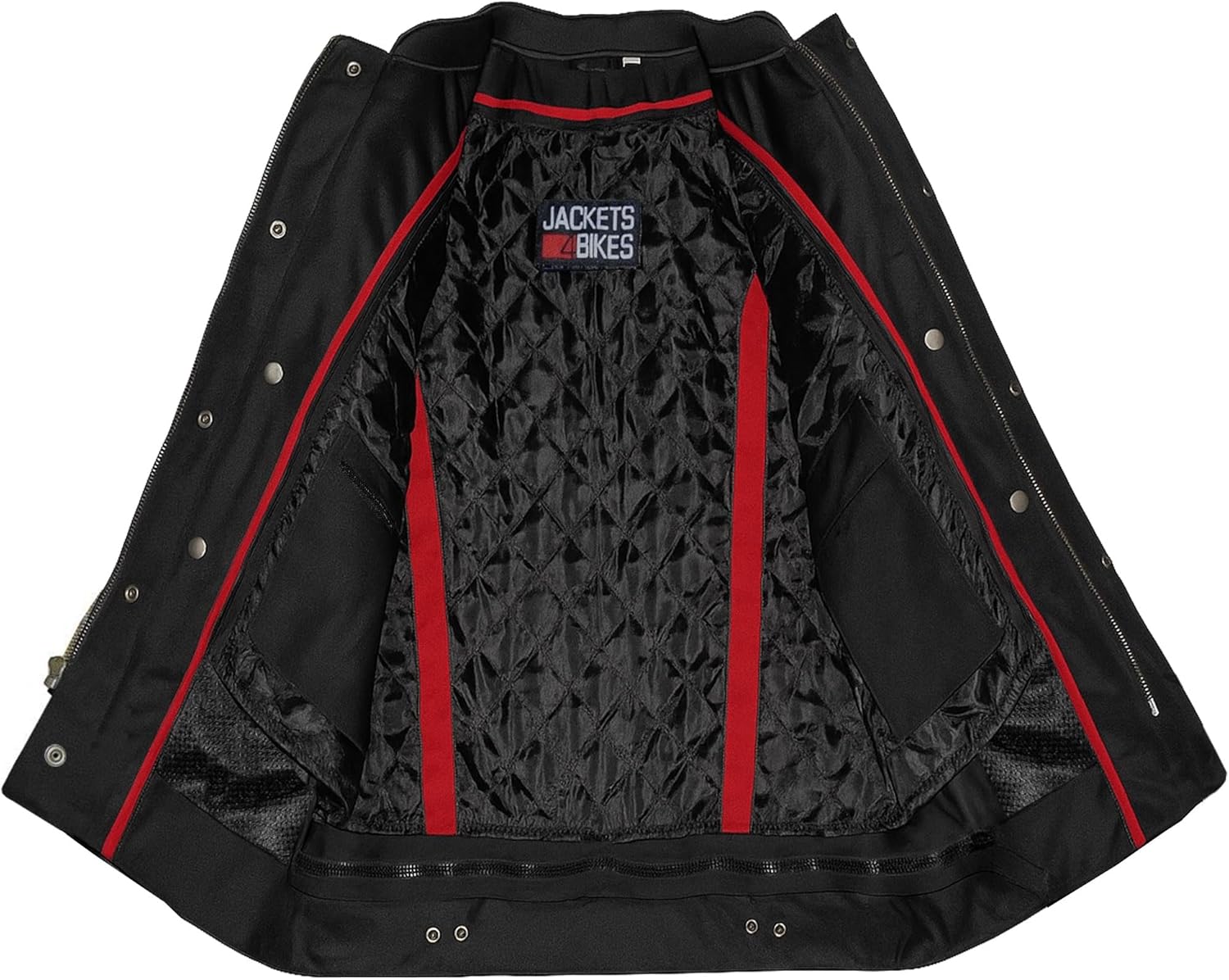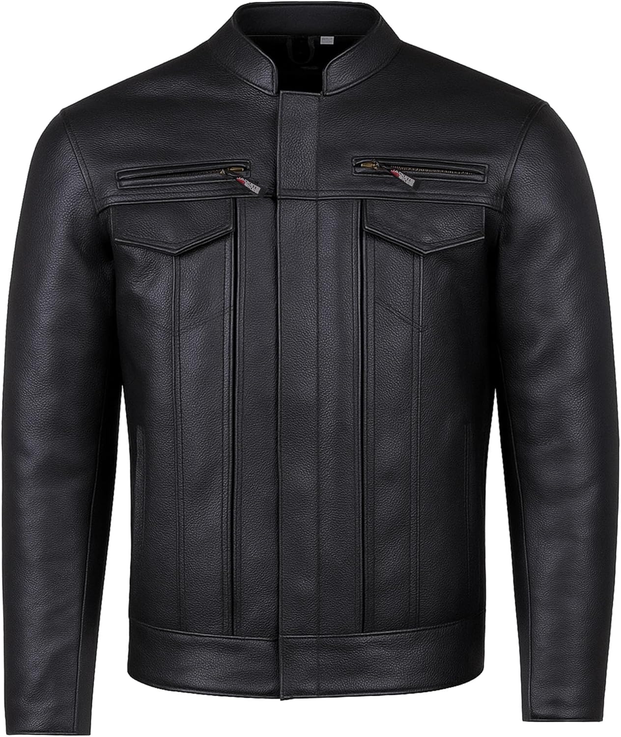 This Motorcycle Jacket transforms your torso into a rolling vault with purpose built pockets including inside utility pockets. Made for riders who carry more than good vibes. On the front two vertical chest pockets swallow phones cigars or a slim wallet and stay locked down at 120 mph while two lower hand-warmer slash pockets keep your fingers thawed on brutal morning runs. Inside two deep utility pockets with heavy brass snaps give one handed access to sunglasses gloves or a pack of smokes. Flanking them are two oversized stash pockets secured by hook-and-loop panels for anything you need silent and secure. Every pocket is lined reinforced and positioned exactly where a riders hands naturally drop. Eight pockets zero reasons to leave anything behind. Load it. Forget it. Ride.