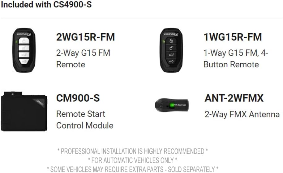 CS4900-S (4900S) 2-way Remote Start and Keyless Entry System with 3000-ft Range. The CS4900-S is part of the ALL-IN-ONE series from . It is a fully featured 2-WAY remote start which comes with 2 remote controls and offers up to 3000 feet of range all for an incredible price!