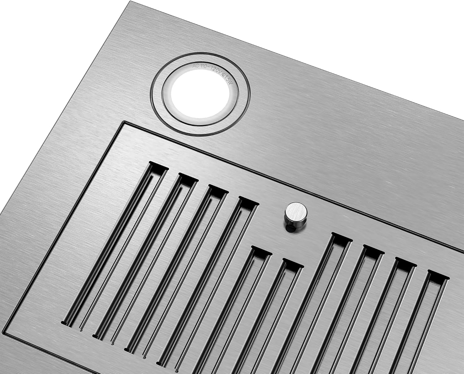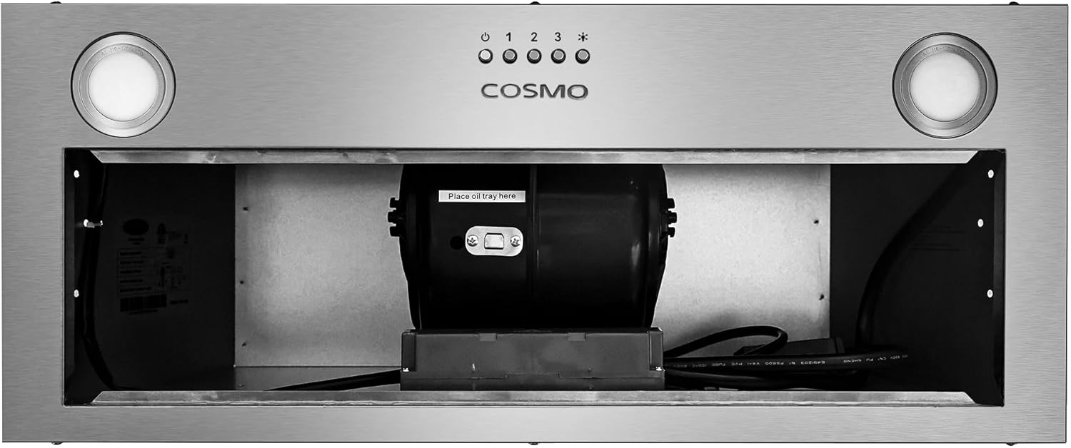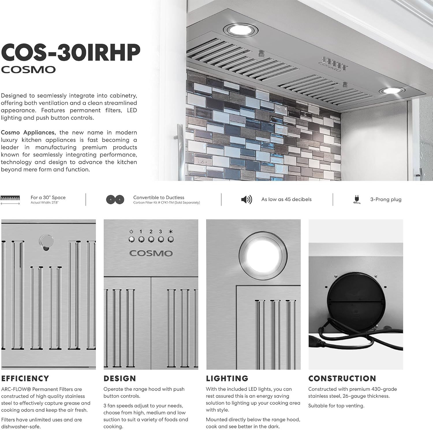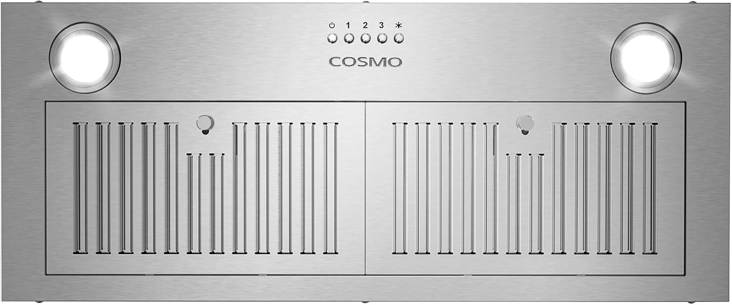 Upgrade your kitchen with 's COS-30IRHP insert range hood for a modern and seamless design. Fits easily into a custom cabinet enclosure with premium brushed stainless steel built to withstand high heat grease oil and steam. Trap grease and cooking odors with 3 fan speeds and illuminate your kitchen with the built-in energy efficient LED lights for easier visibility. Clean-up is a breeze with easily removable permanent dishwasher-safe stainless steel filters. Save money year-round with unlimited uses on these filters. A 3-prong power cord is included for easy installation. A better home starts with .