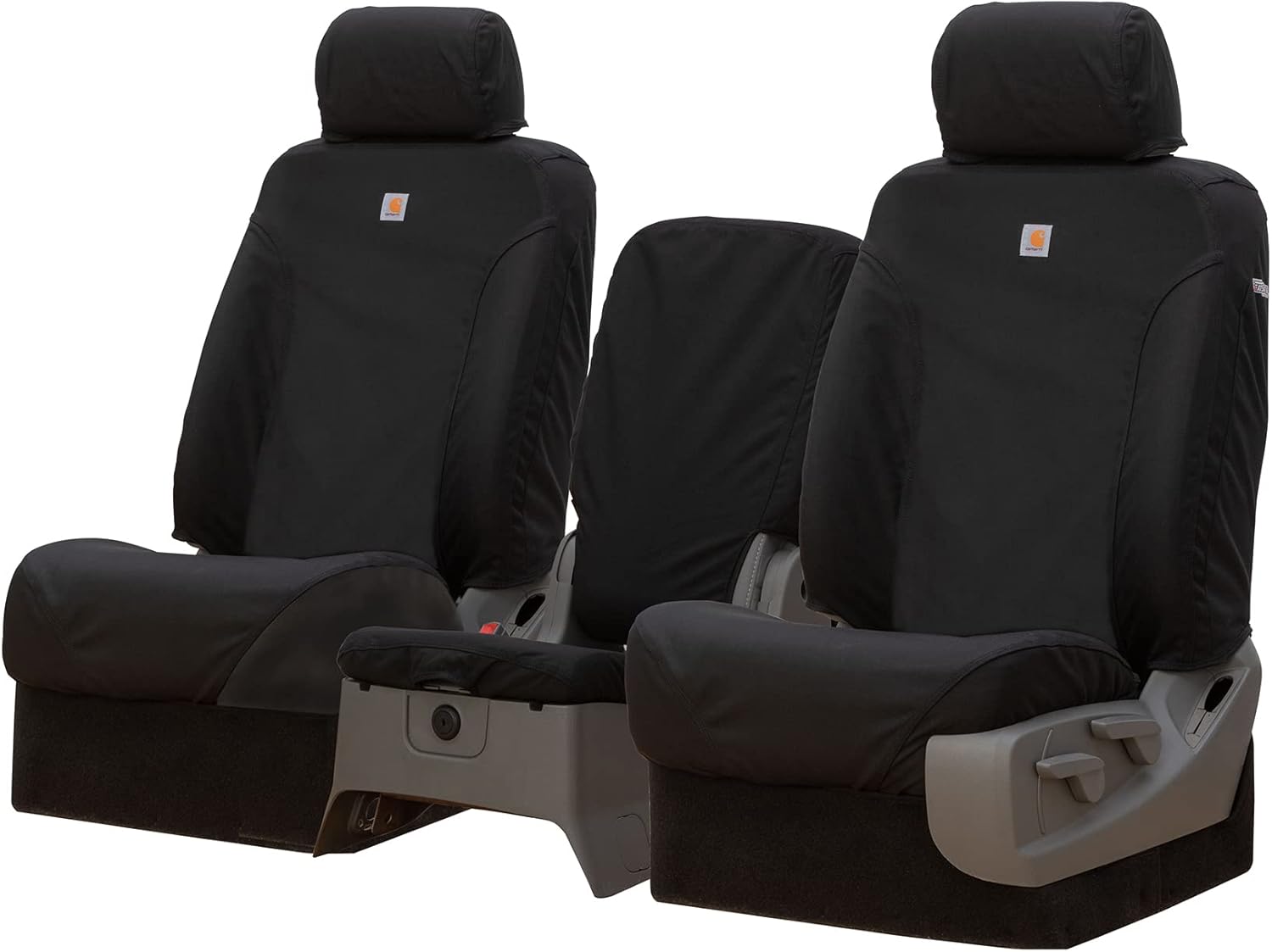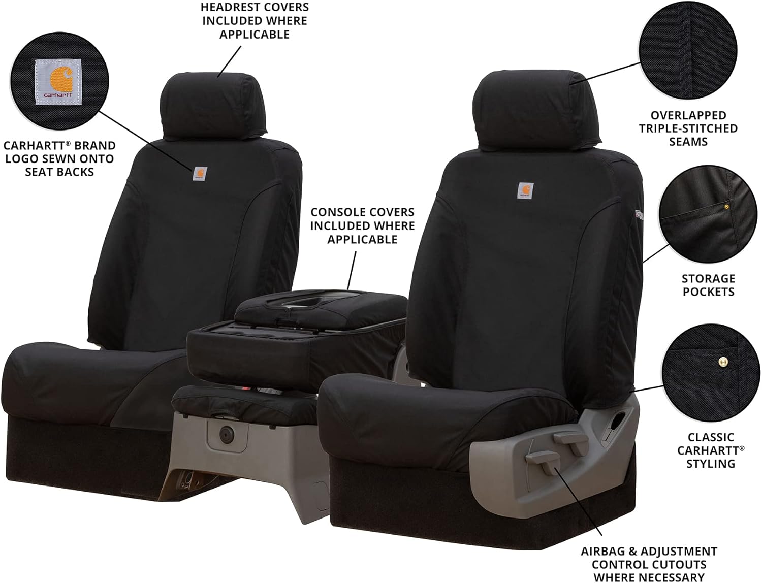 Our Carhartt Super Dux SeatSaver Seat Covers are our toughest custom seat covers yet. Born from work. Built for Play! These seat covers are custom crafted from durable 1 000 denier Cordura nylon fabric. Each seat cover is specially treated with Rain Defender DWR technology that makes water bead up and roll off with ease. Perfect for keeping your factory seats protected from whatever you throw at them. Cordura is the toughest material available for custom seat covers. Our Super Dux seat covers are designed specifically for trucks and SUVs for those that use and abuse their vehicle for work and play.