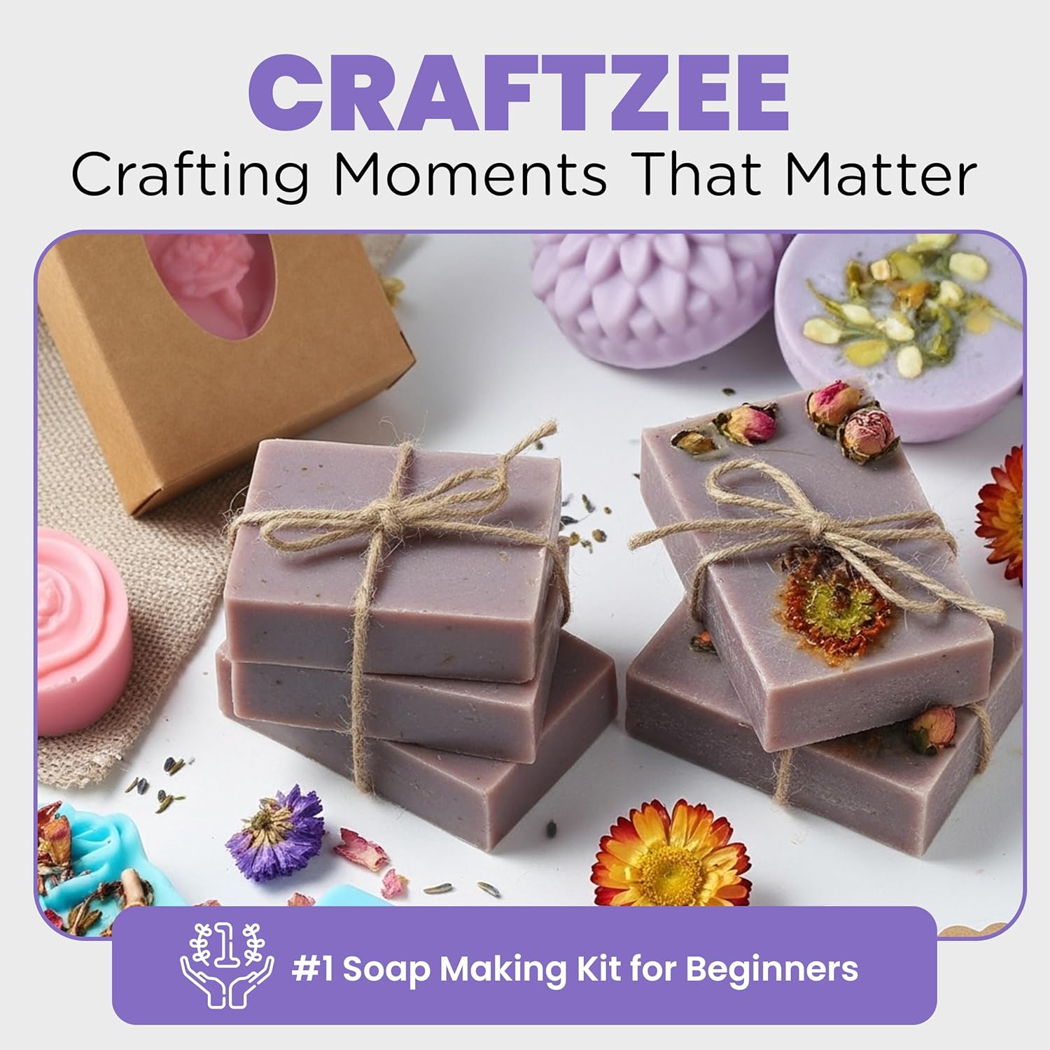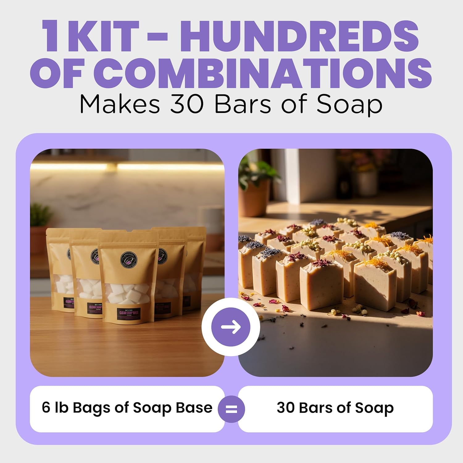 Easy to Follow Instructions for Professional Results at Home Easy-to-follow instructions make soap making simple fun and successful even for beginners. These soap craft supplies for adults and kids are made with premium ingredients like organic shea butter for soap making clear soap base and pro-grade fragrances for lasting scent. The included soap cutter box food grade silicone loaf soap mold floral molds along with the straight and wavy soap cutters for soap making and tools let you pour layer and shape your soaps like a pro!