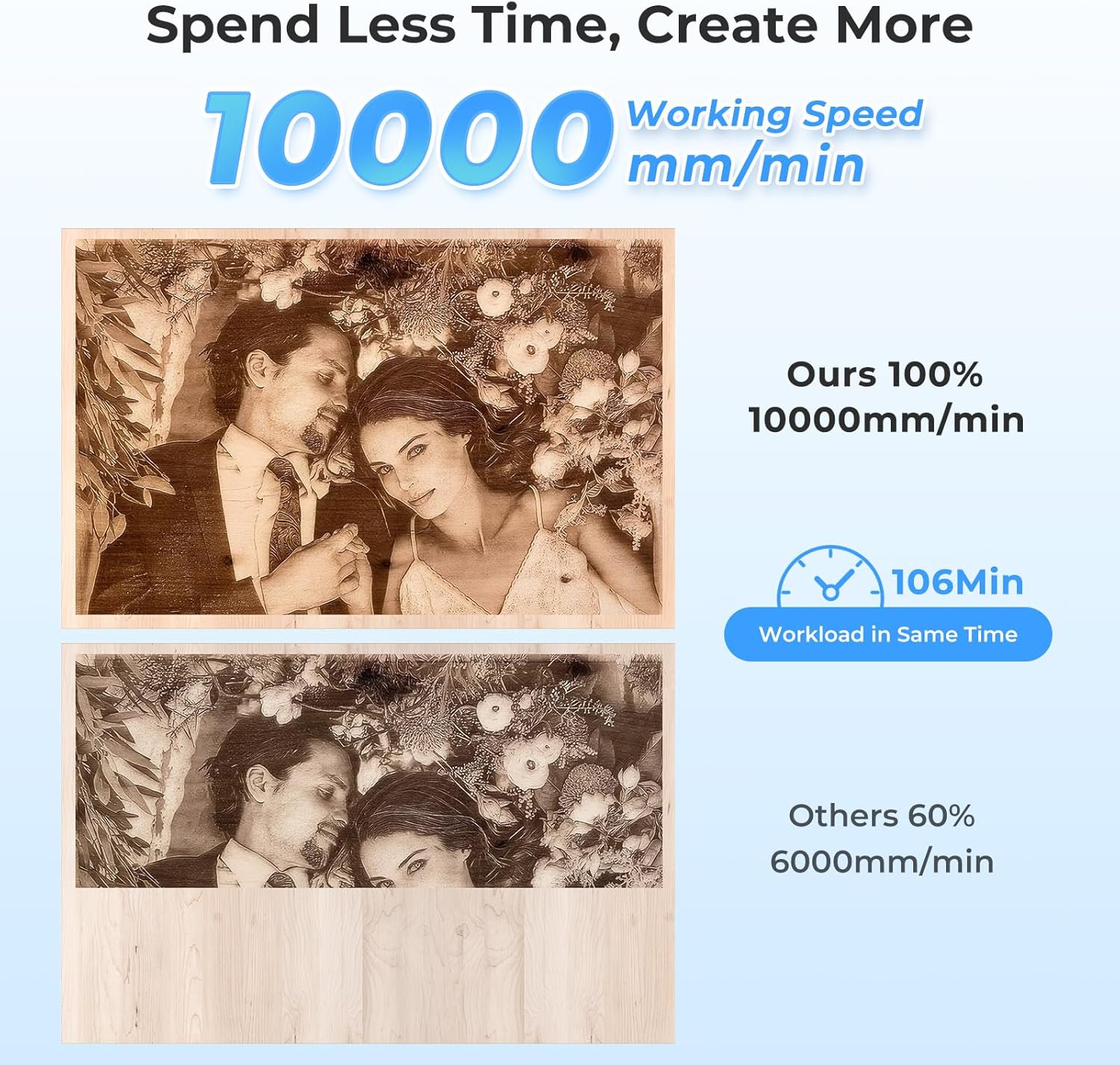 High-Precision CuttingThe laser engraver machines 72W power and 0.06mm laser accuracy ensure sharp detailed engraving. It easily cuts through wood acrylic and other materials delivering clean edges and intricate designs with minimal effort.