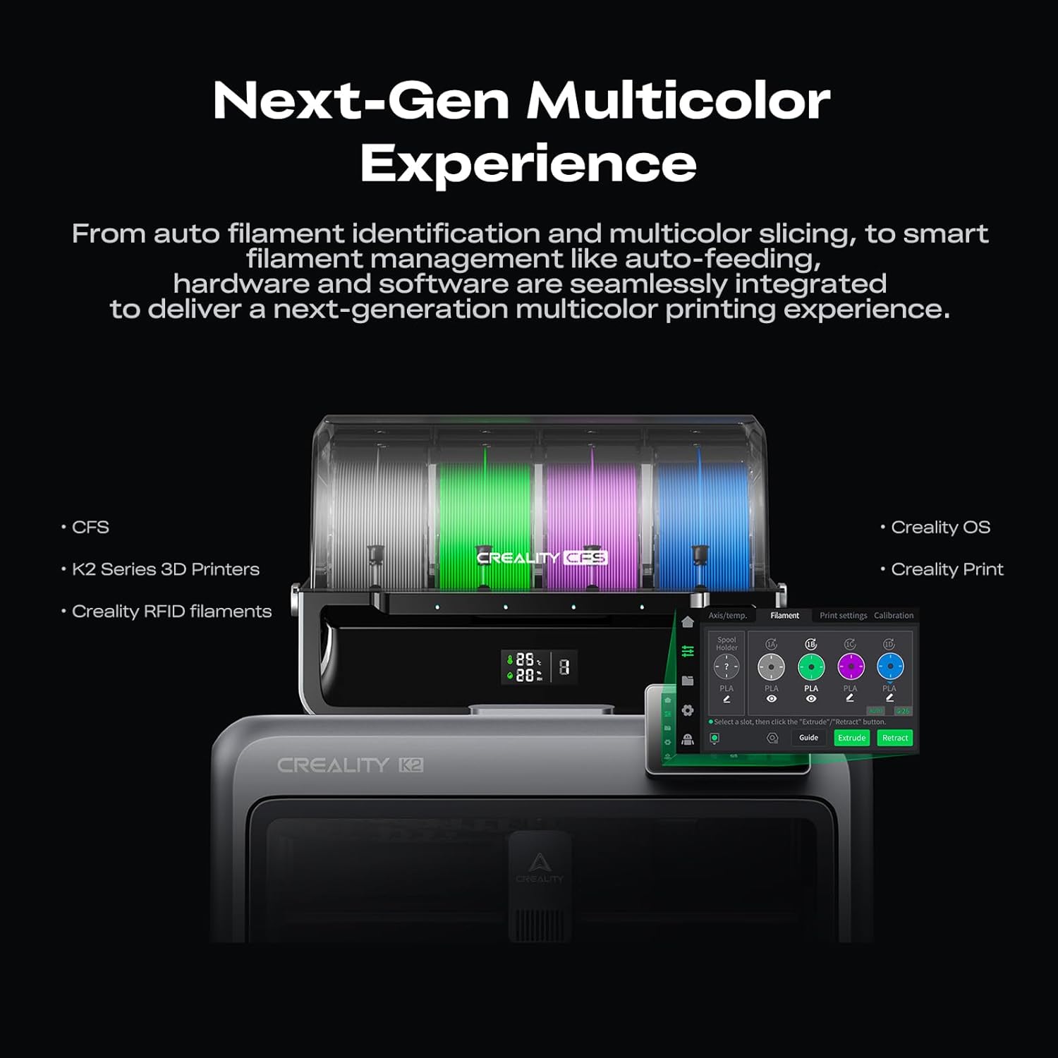 Smart Filament System Dry Auto & ReliableExperience intelligent filament handling with auto identification auto relay and moisture-proof storage. The RFID system reads filament info automatically while the airtight design with desiccants keeps materials dry and ready.