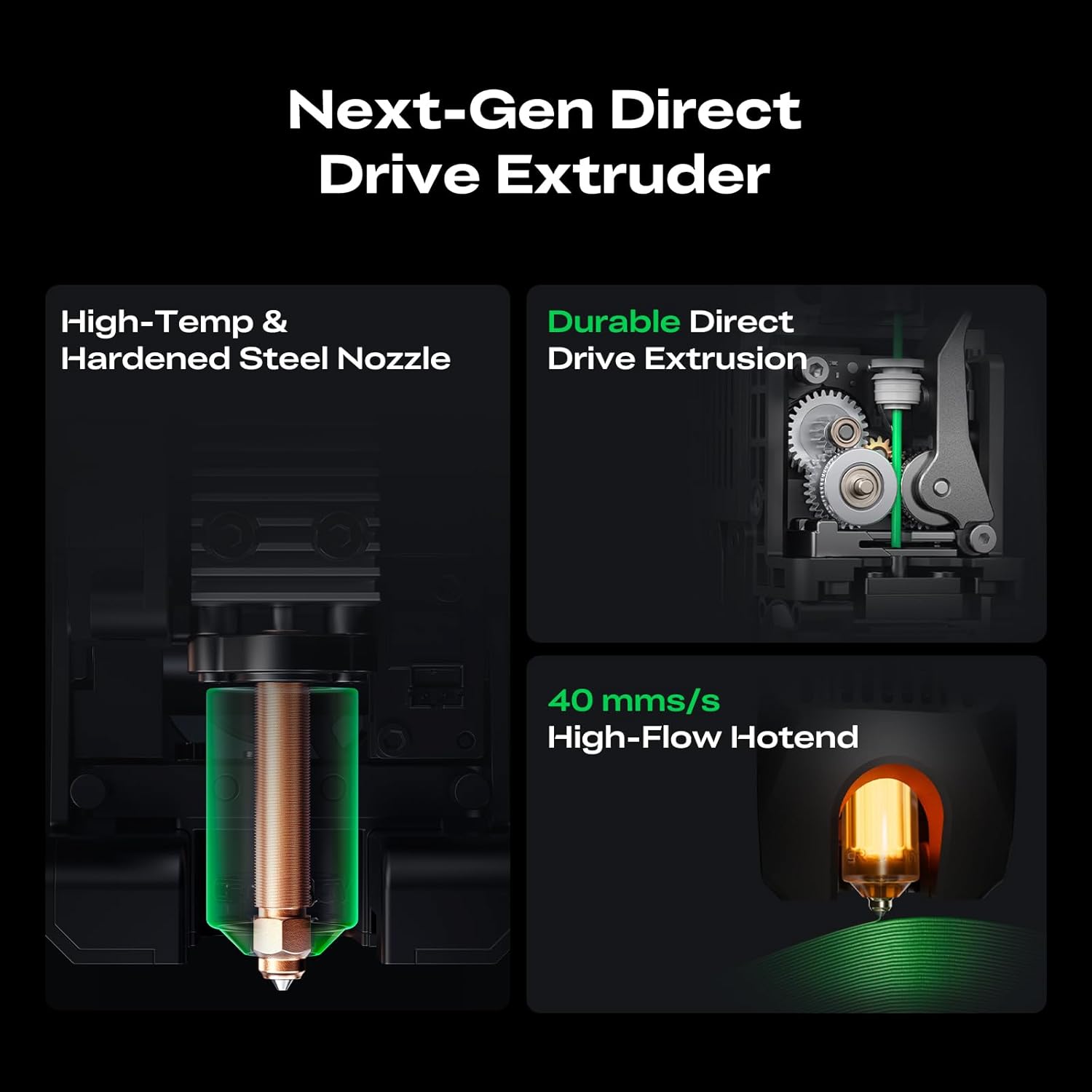 Direct Drive Pro-Level MaterialsEquipped with a 40 mm/s high-flow hotend a hardened steel nozzle (up to 300 C) and durable direct drive extrusion K2 Combo handles PLA ABS PETG and even engineering-grade filaments with ease.