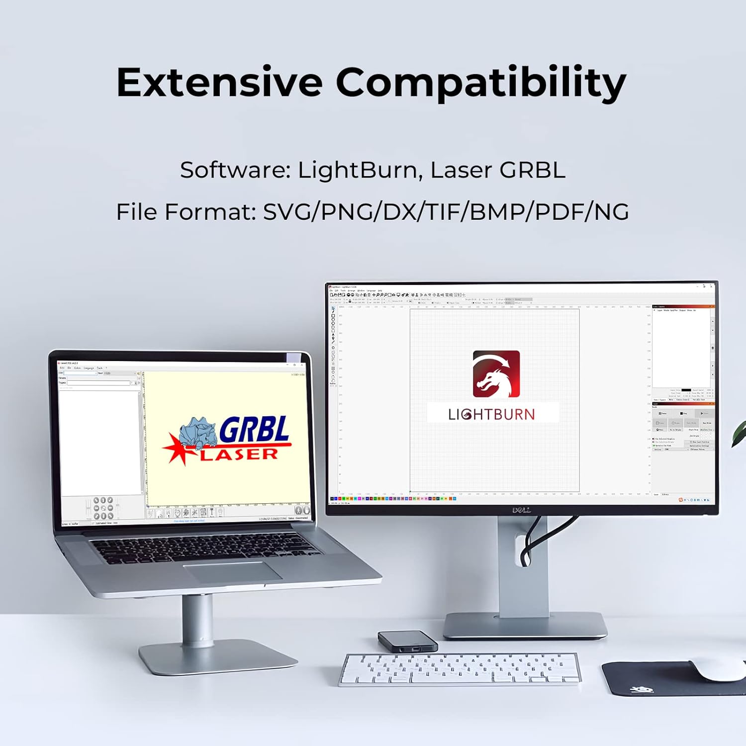 EASY TO OPERATE - laser engraver can be compatible with various mature engraving software LightBurn for experirenced laser user and LaserGRBL for new laser user. LaserGRBL Support Win 7 / Win 8/ Win 10/Win XP LightBurn supports window /Mac /Linux system.And you can transfer data via Wi-Fi USB cable and SD card and use laser cutter and engraver machine anytime and anywhere.One-button management make it so easy for you to use anywhere and anytime.