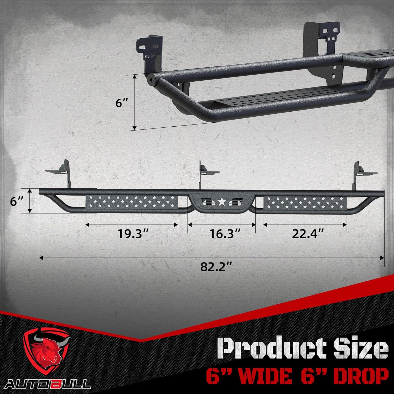 running board features a 6-inch width and a 6-inch drop design with a weight capacity of 550 pounds and its height is not adjustable.