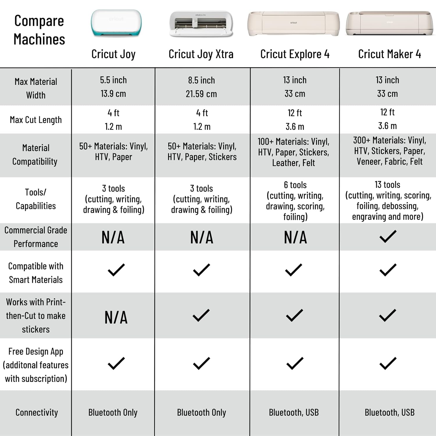 PRECISION CUTS 100+ MATERIALS: Cuts everything from the essentials of iron-on and vinyl to delicate paper and cardstock. The Explore 4 works with additional blades and tools to add pro-level effects such as scoring writing foiling and more. The built in sensor recognizes and precision cuts around ink-jet printed images to create full-color stickers and more! Smart Materials work without a mat for faster and longer cuts.