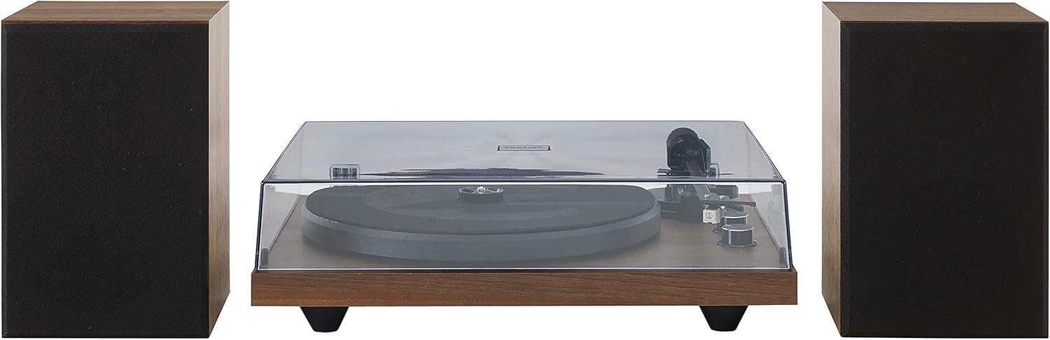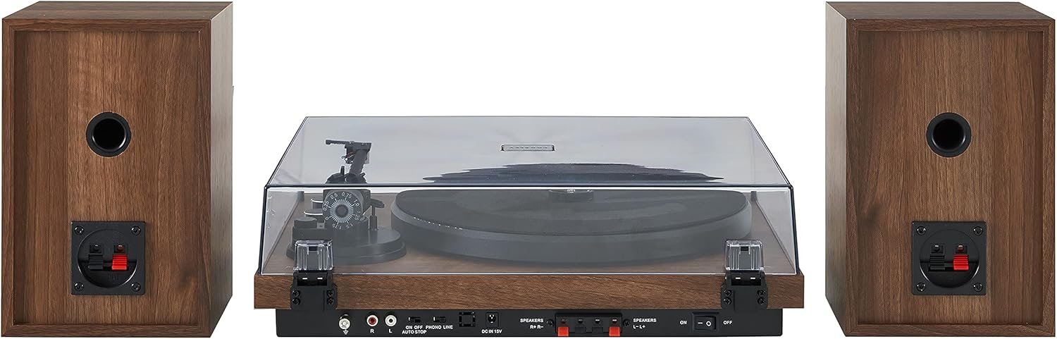 BLUETOOTH RECORD PLAYER: Bluetooth connectivity lets you stream music from your mobile device through the matching full-range bookshelf speakers; 18W RMS (36W Peak) Per Speaker - 31W Max Power - Frequency response 20Hz -20KHz