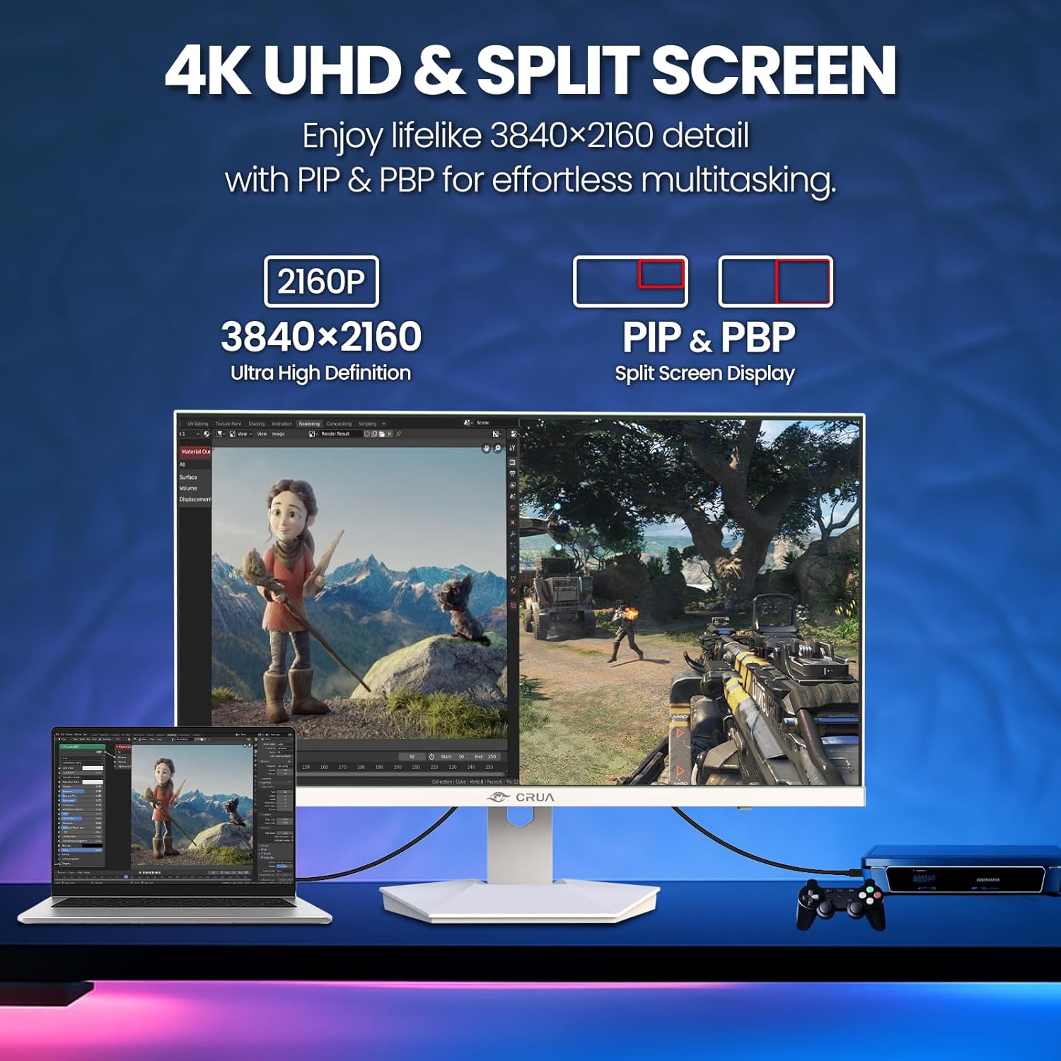 PIP & PBP for Efficient Multi-Tasking: Use Picture-in-Picture (PIP) or Picture-by-Picture (PBP) to display multiple sources simultaneously. Stream game and work on one screenperfect for content creators multitaskers or anyone who needs to monitor multiple devices at once.