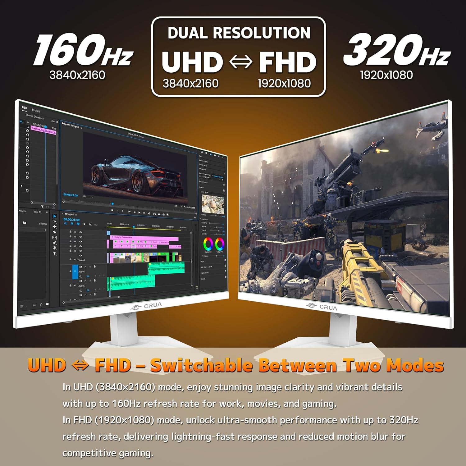 Smooth & Tear-Free Gameplay: AMD FreeSync eliminates screen tearing and stuttering while high refresh rates in dual modes (4K 160Hz / FHD 320Hz) ensure fluid responsive gaming. FPS racing strategy or eSports titles run smoothly giving you a competitive edge.