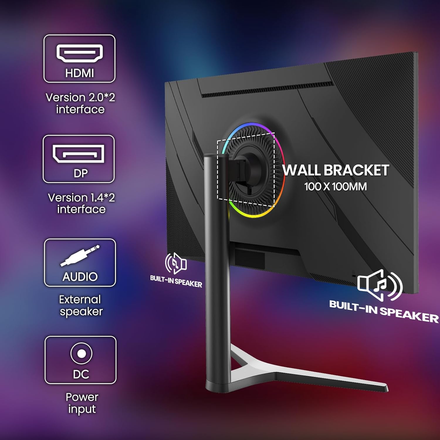 [Fully Adjustable Ergonomic Stand] Customize your setup with tilt (-5/20) swivel (30) height adjustment (130mm) and 90 pivot for a vertical monitor layoutideal for coding stock trading browsing multitasking or reading long documents. The PC monitor also supports 100100mm wall mounting for clean ergonomic setups in gaming rooms offices and studios