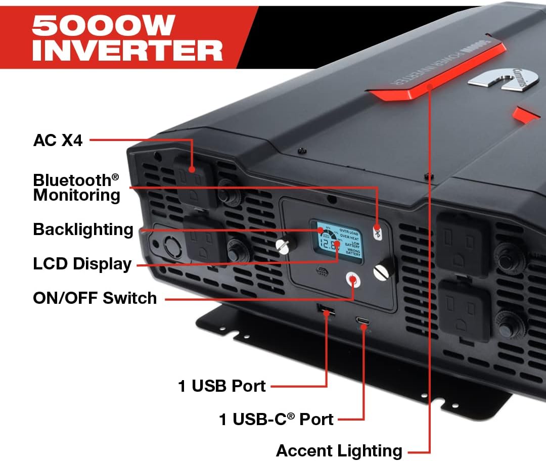 Four AC outlets with protective port covers to keep debris out when not in use. Convert 12V DC power from your vehicle battery into 110V AC power for mobile convenience