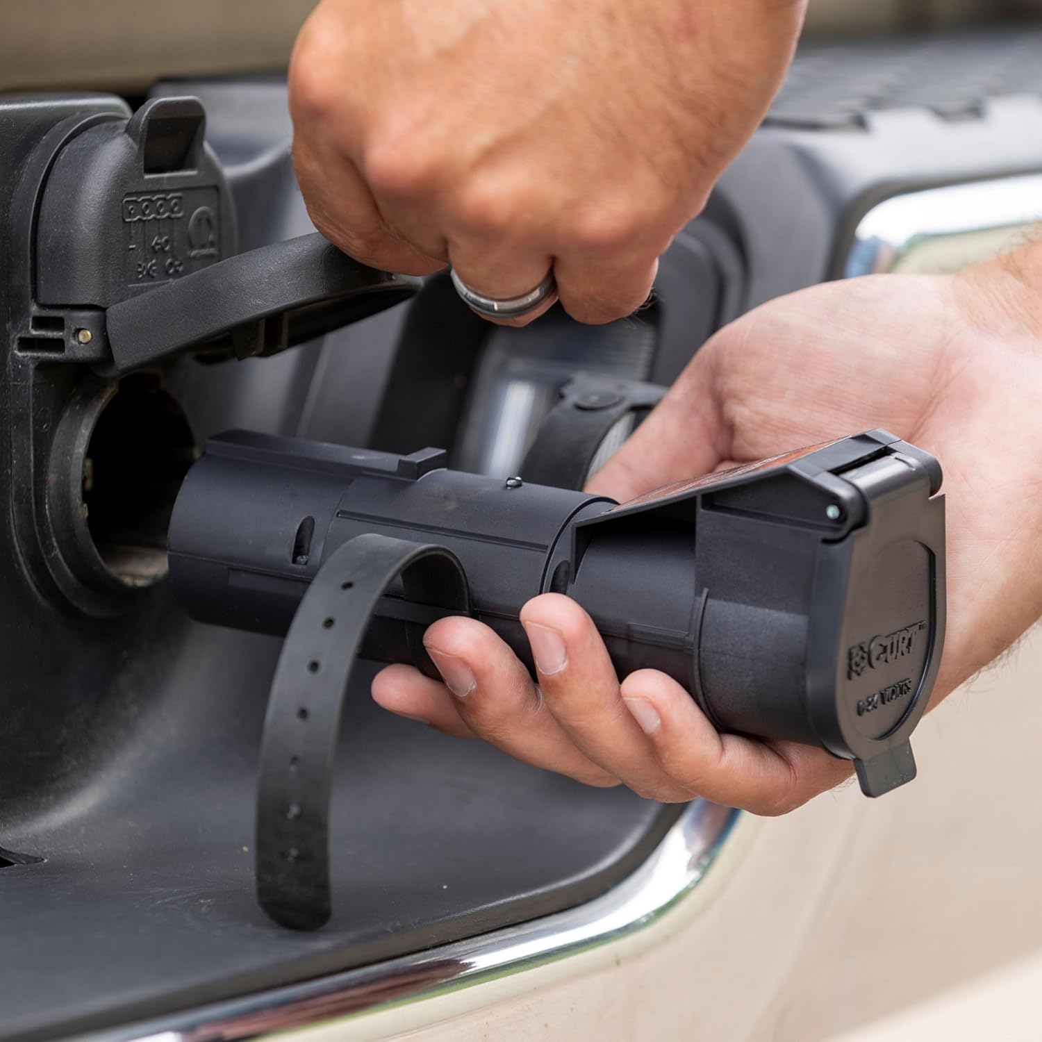 ZERO-TOOL INSTALL Installing this trailer brake controller is as easy as plugging in a 7-way trailer wiring connector. It requires no tools no extra wires and no hardware. A locking tab and strap keep it firmly connected. NOTE: Strap stored inside cap