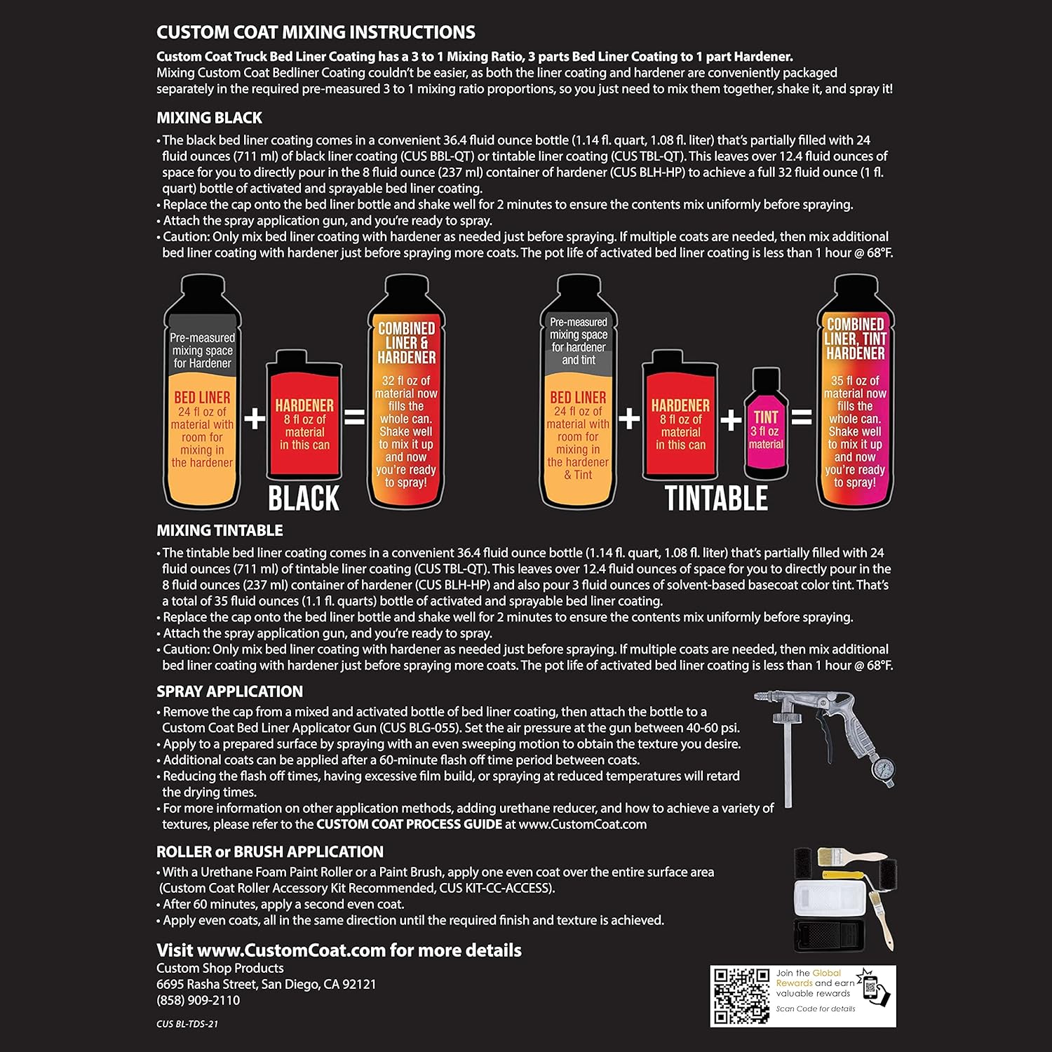 Easily achieve professional results with our DIY Custom Coat Kit Packages. Kits are available in various sizes from 1 quart to 2 gallon. Kits are also available with either a Spray Applicator Gun or a Paint Roller Application Set. Custom Coat also offers Urethane Tint Concentrate in over 50 colors so you can choose either a single color or use different colors to create your own multi-colored custom look or use the colors that will make a great camouflage pattern.