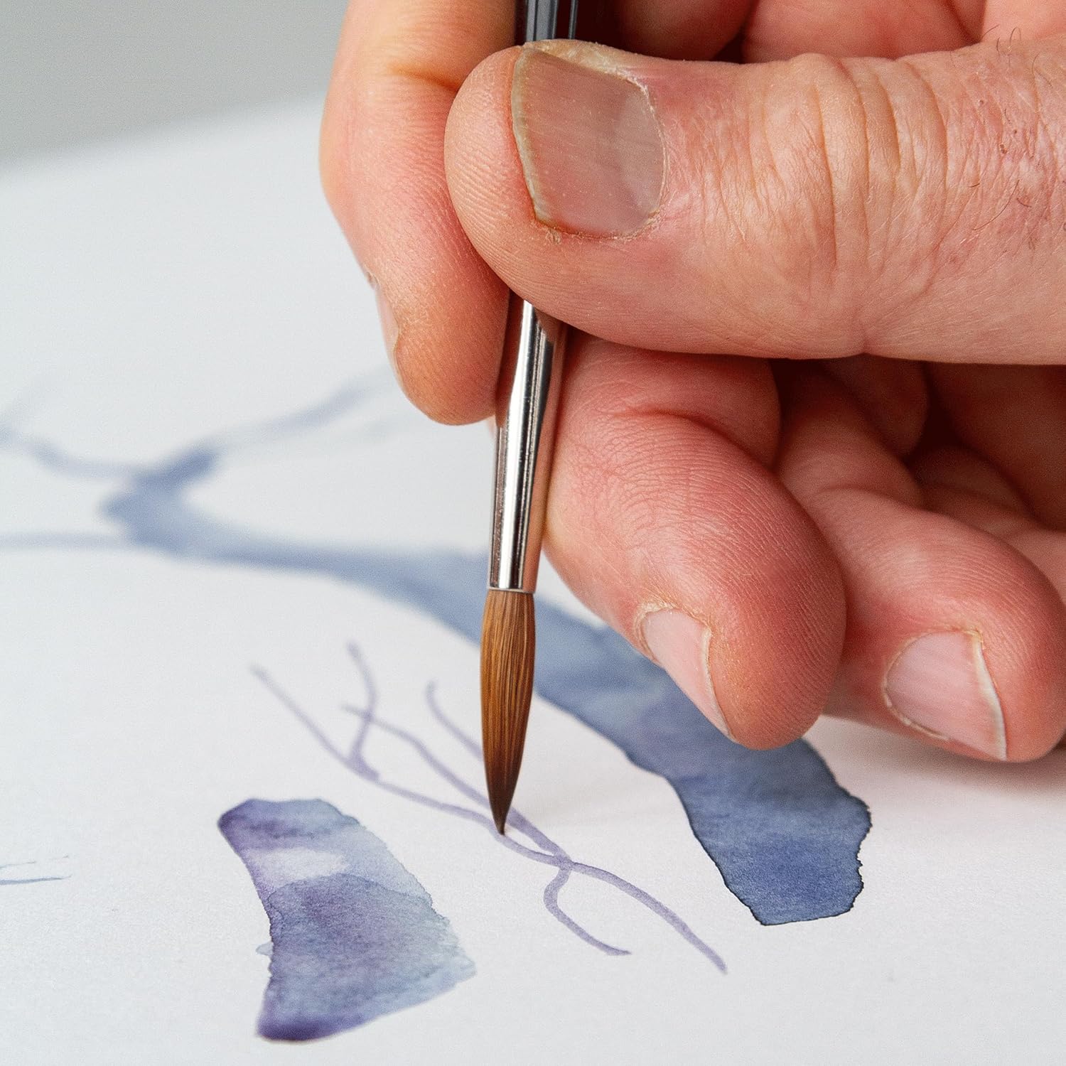 Series 35 has an extra long taper at the tip. The unique taper is great for fast loose watercolor painting and is a favorite amongst illustrators cartoonists and animators. Great for drawing long clean lines. The Maestro designation denotes the highest quality winter male Kolinsky Red Sable hair from the Tobol River region in Eastern Siberia. All brushes are handmade from raw material to finished brush by skilled artisans at the factory in Germany. A favorite of watercolorist Charles Reid. Sizes 000 to 24.