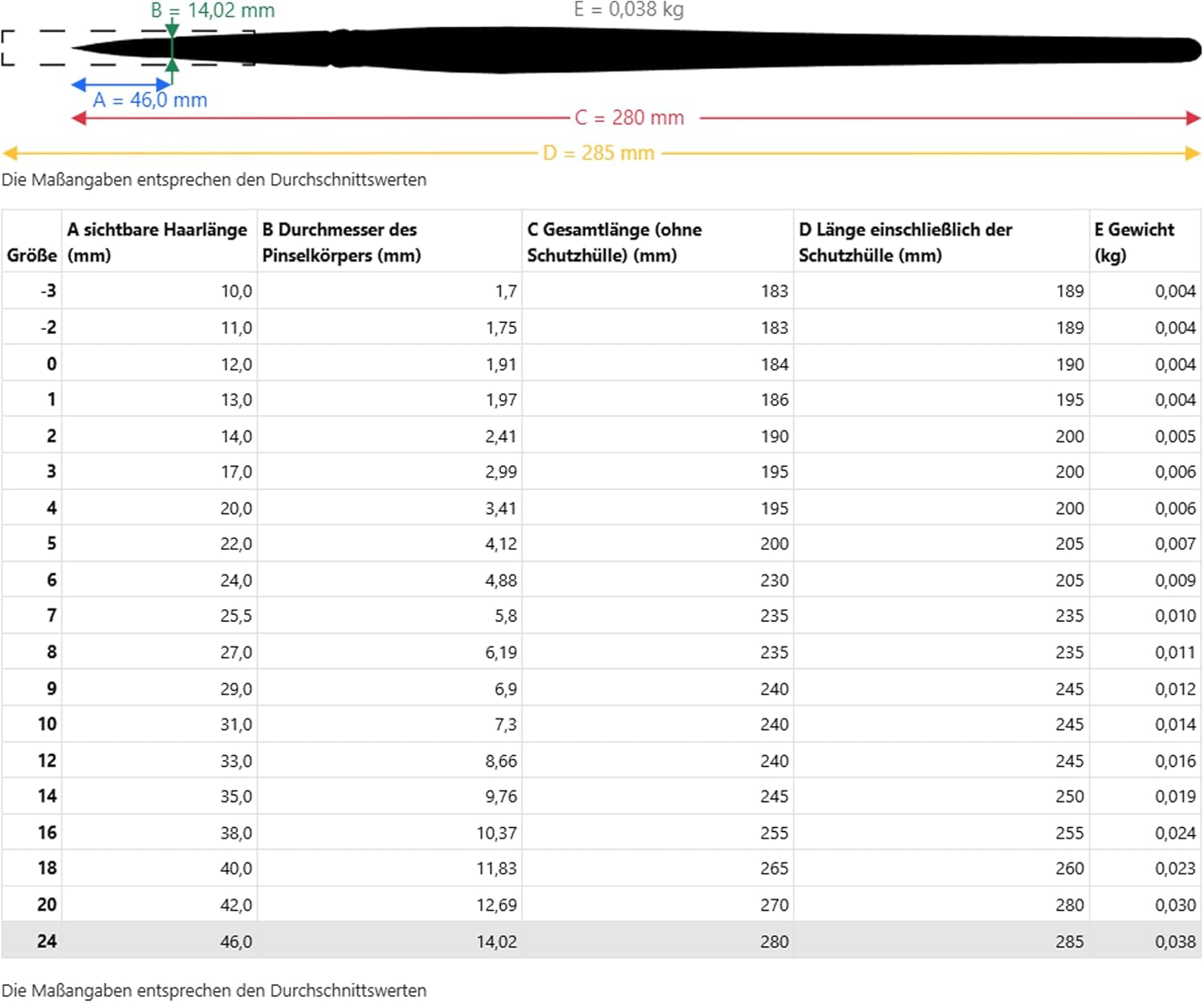 The maestro designation denotes the highest quality winter male kolinsky red sable hair from the tobol river region in eastern siberia