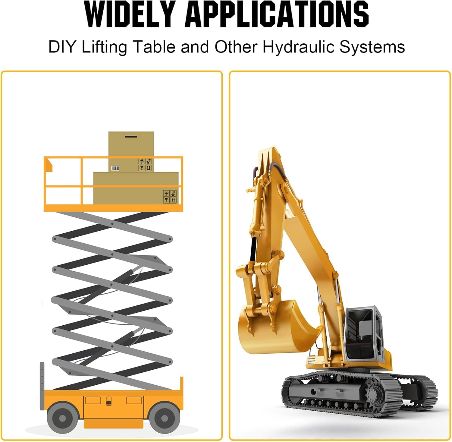 Easy to Use: This hydraulic power unit can be used directly with the controller (included) after connecting your cylinder with the oil pipe (not included) and connecting the 12V DC power supply (not included) according to the instructions. The interface type of the oil port is (9/16")SAE#6 and the suitable hydraulic oil viscosity range is 22-46mm/s.