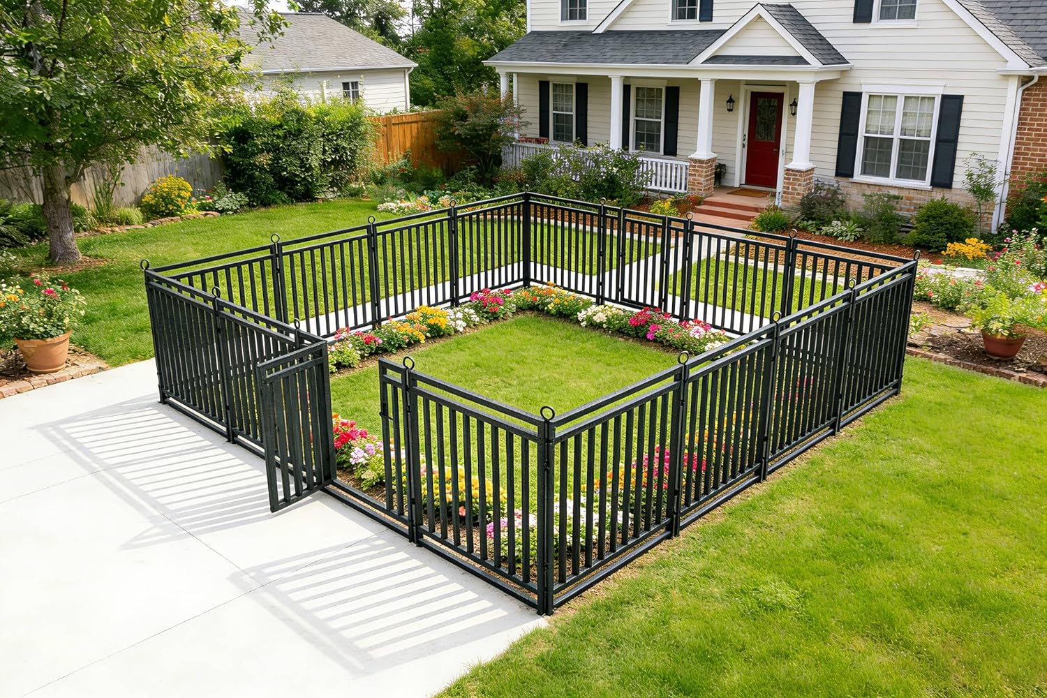 This garden fence is crafted from durable steel with a rust-proof coating ensuring long-lasting use outdoors. It's easy to assemble with its simple panel connection design making it perfect for gardens yards or pet enclosures. Expandable to fit any area it offers both security and privacy. With its sleek black finish it not only protects but also enhances the aesthetic of your space. Ideal for adding functionality and beauty to your garden.