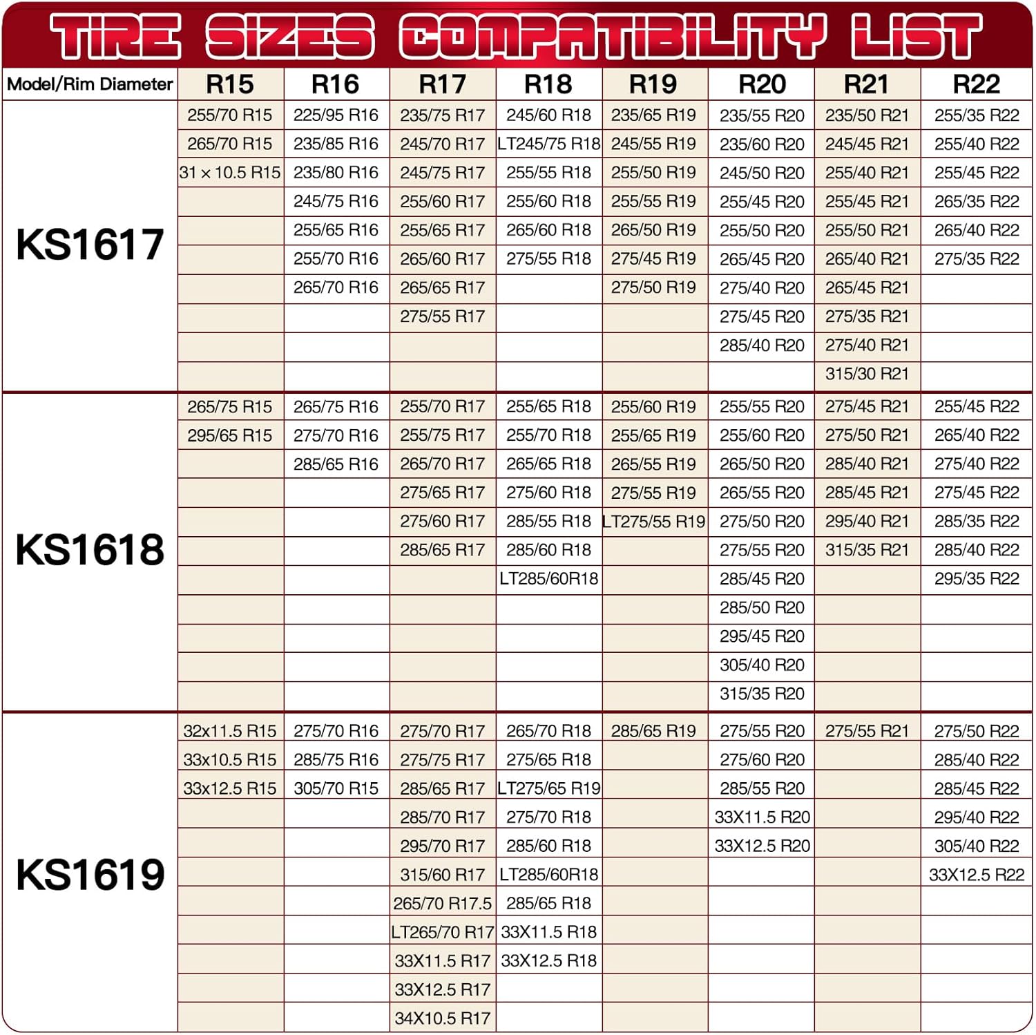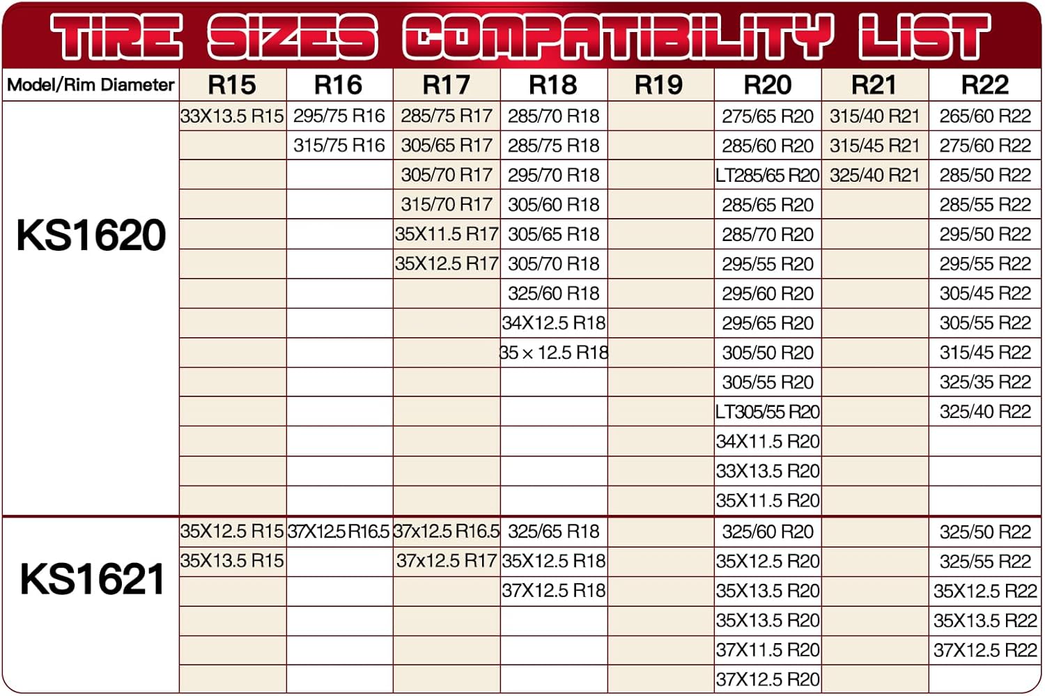 Suitable for Tire Size32x11.5 R15 33x10.5 R15 33x12.5 R15 275/70 R16 285/75 R16 305/70 R15 275/70 R17 275/75 R17 285/65 R17 285/70 R17 295/70 R17 315/60 R17 265/70 R17.5 33X11.5 R17 33X12.5 R17 34X10.5 R17 265/70 R18 275/65 R18 275/70 R18 285/60 R18 285/65 R18 33X11.5 R18 33X12.5 R18 285/65 R19 275/55 R20 275/60 R20 285/55 R20 33X11.5 R20 33X12.5 R20 275/55 R21 275/50 R22 285/40 R22 285/45 R22 295/40 R22 305/40 R22 33X12.5 R22