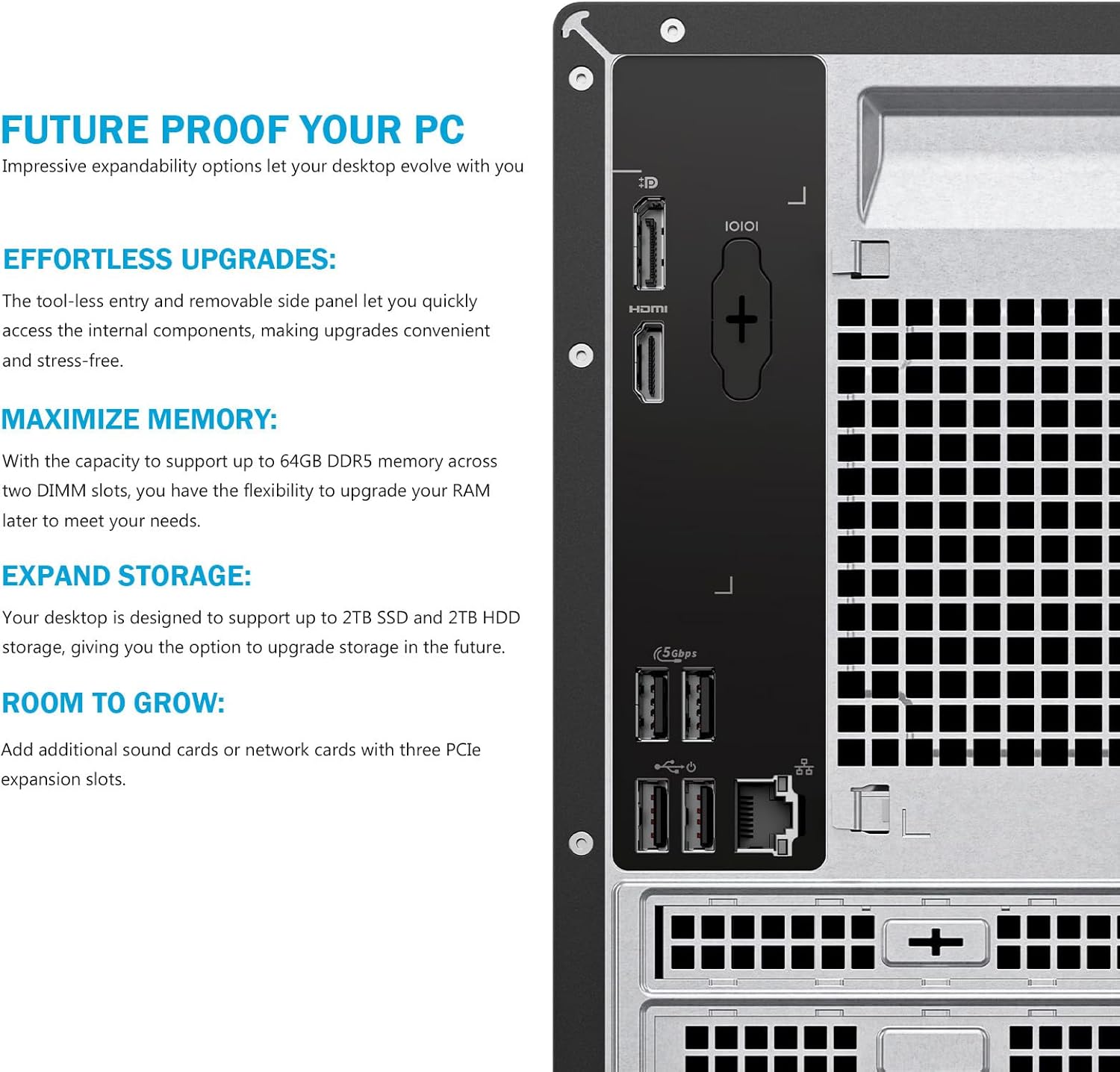 The Tower delivers up to 24% more CPU performance and up to 66% better graphics performance than the previous gen Inspiron Desktop.
