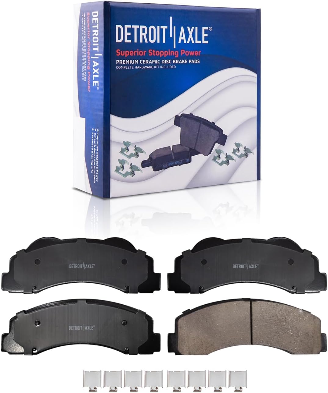 Brake Kit Includes: 2x Front Drilled and Slotted Disc Brake Rotors + 2x Rear Drilled and Slotted Disc Brake Rotors + 2x Front Ceramic Brake Pads w/ Hardware + 2x Rear Ceramic Brake Pads w/ Hardware