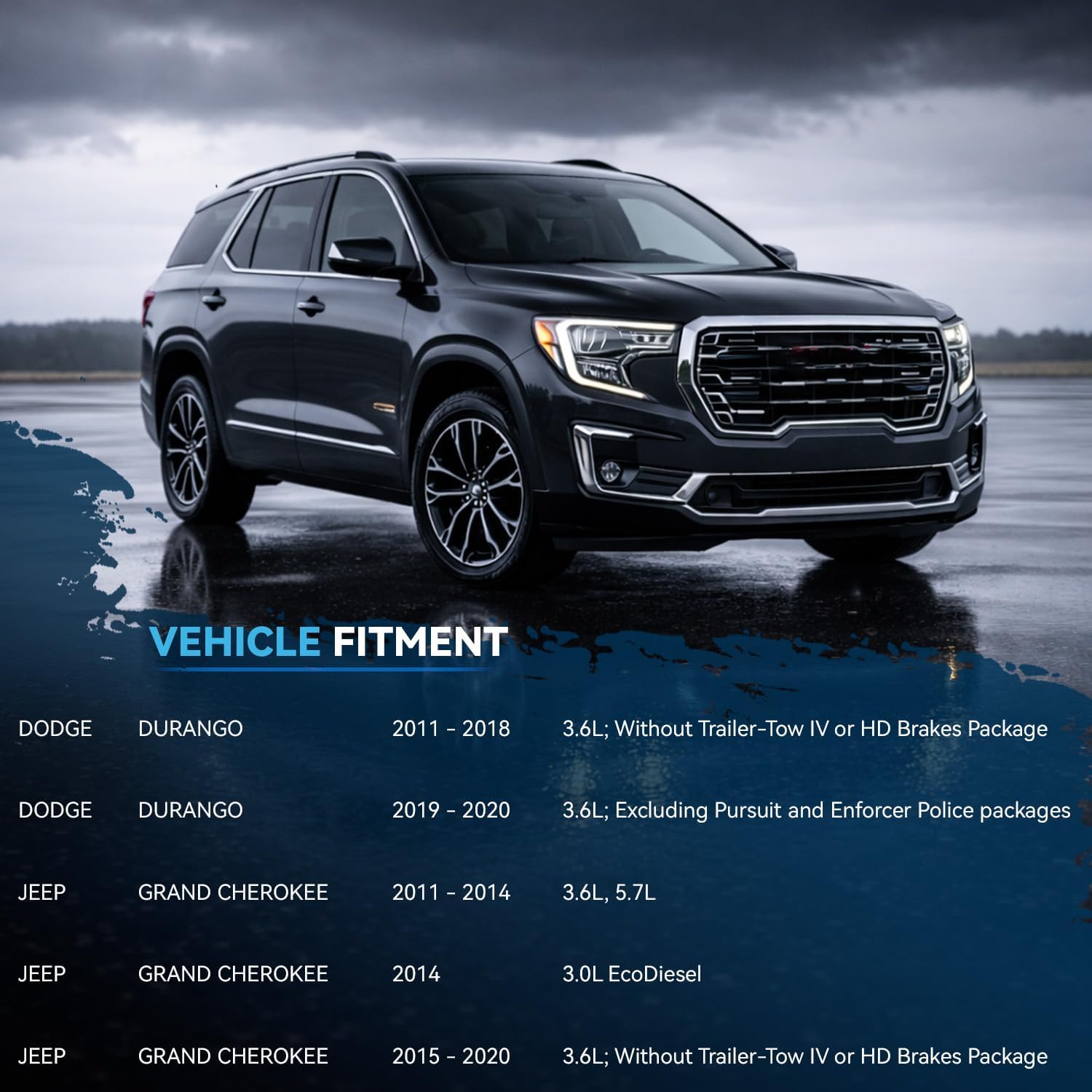 Brake Rotors Brake Pads Replacement for 2011-2018 Dodge Durango (3.6L; Without Trailer-Tow IV or HD Brakes Package) - [2019-2020 Dodge Durango (3.6L; Excluding Pursuit and Enforcer Police packages)] - 2011-2014 Jeep Grand Cherokee (3.6L; 5.7L) - [2014 Jeep Grand Cherokee (3.0L EcoDiesel)] - 2015-2020 Jeep Grand Cherokee (3.6L; Without Trailer-Tow IV or HD Brakes Package)