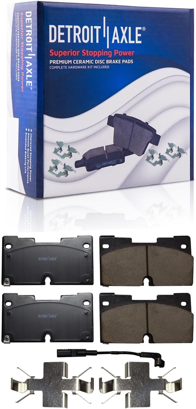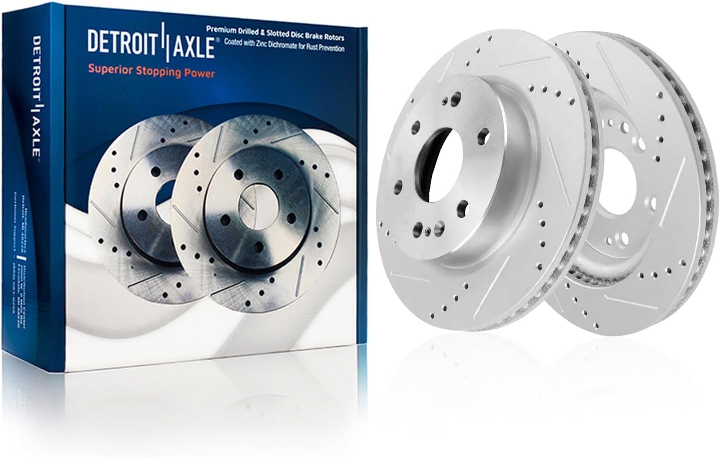 Brake Kit Includes: 2x Front Drilled and Slotted Disc Brake Rotors + 2x Rear Drilled and Slotted Disc Brake Rotors + 2x Front Ceramic Brake Pads w/ Hardware + 2x Rear Ceramic Brake Pads w/ Hardware + 1x 10oz Brake Cleaner Spray + 1x 12oz Brake Fluid Bottle
