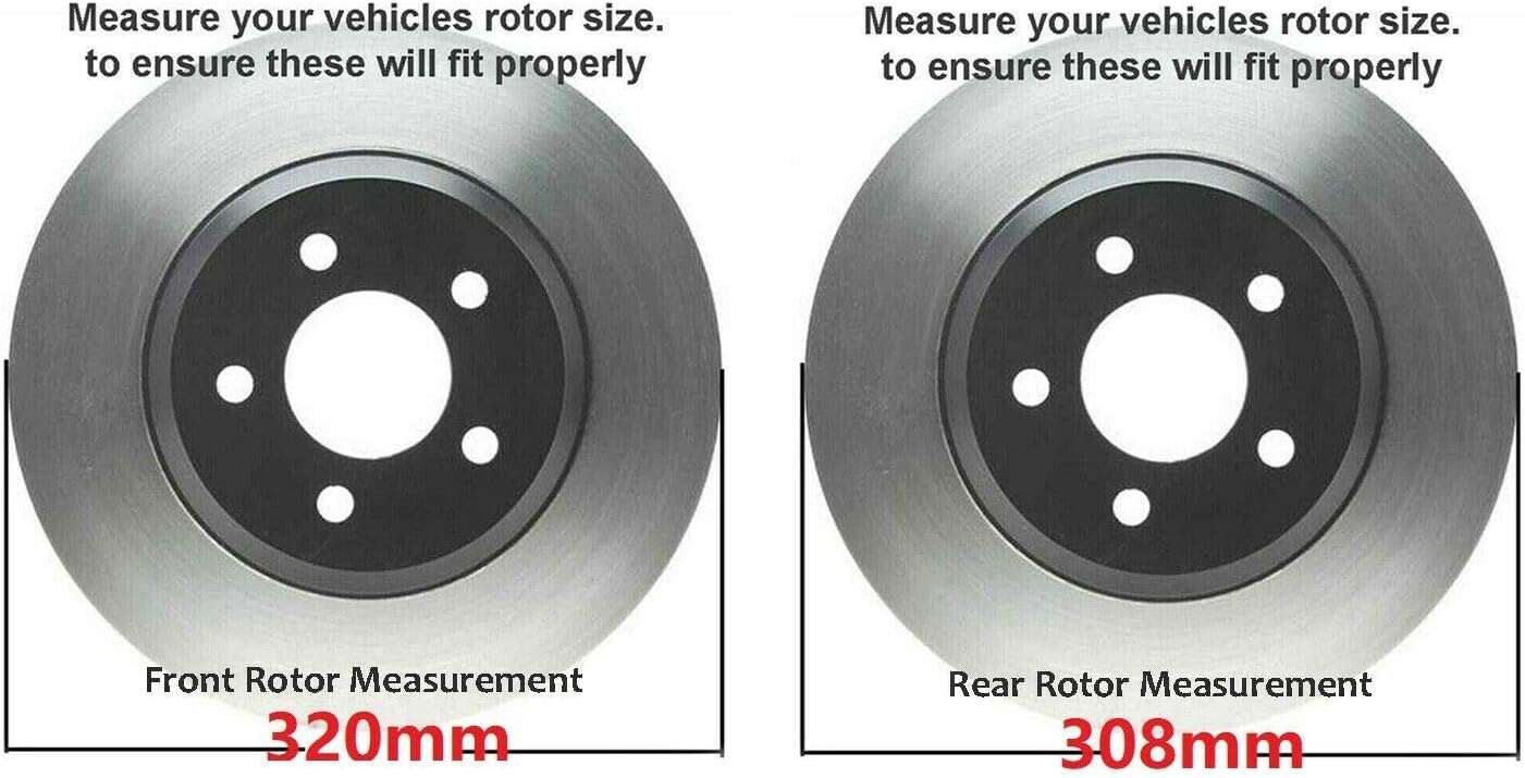 Brake Kit Includes: 4x Front & Rear Disc Brake Rotors + 4x Front & Rear Ceramic Pads + 2x Brake Cleaner & Fluid