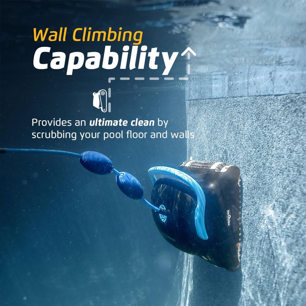WALL-SCRUBBING POWER: Our robot pool cleaner climbs walls efficiently ensuring thorough cleaning on any pool surface no matter the shape or surface type.