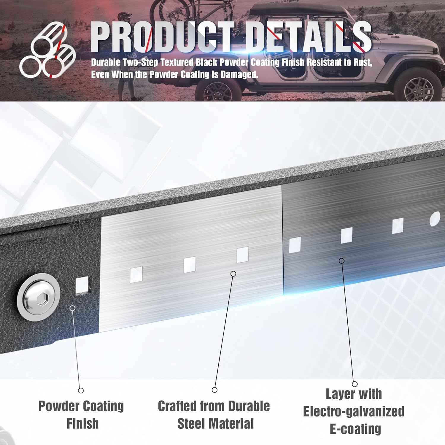 Heavy-Duty Construction: Crafted from robust steel with a durable black powder-coated finish the Door Storage System is built to resist rust corrosion and scratches. It features molded urethane cradles that guide your Ford Bronco doors into place and keep them securely positioned while in storage. Just slide the doors onto the cradles until they rest on the hinge pinssimple and secure.