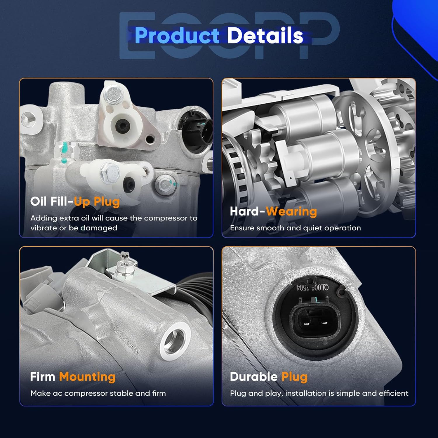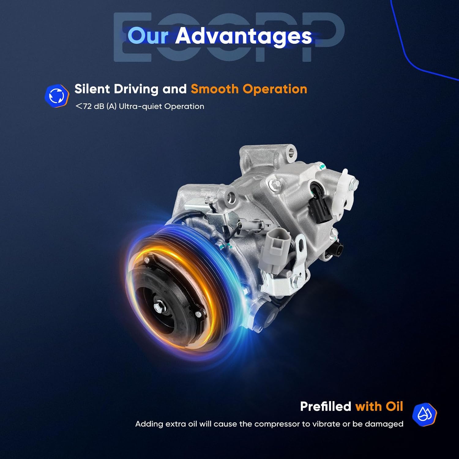 BEST FEATURE: air conditioner compressors are designed and manufactured to meet or exceed the standards of the original equipment components we are replacing. Each compressor is loaded with lubricating oil to prevent rust of compressors' internal parts oxidization and ensure proper lubrication (please ask professional mechanics to measure appropriate oil requirements for your specific A/C system)