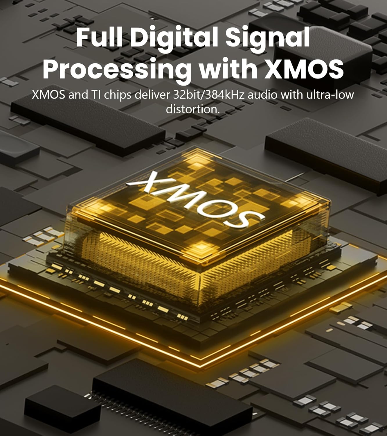 Hi-Res Audio & Lossless Playback: Supports pristine 24-bit/192kHz audio via USB-C/Optical/Coaxial inputs + 24-bit/96kHz analog RCA. XMOS 16-core processor ensures zero resampling reproducing studio-grade sound exactly as the artist intended.
