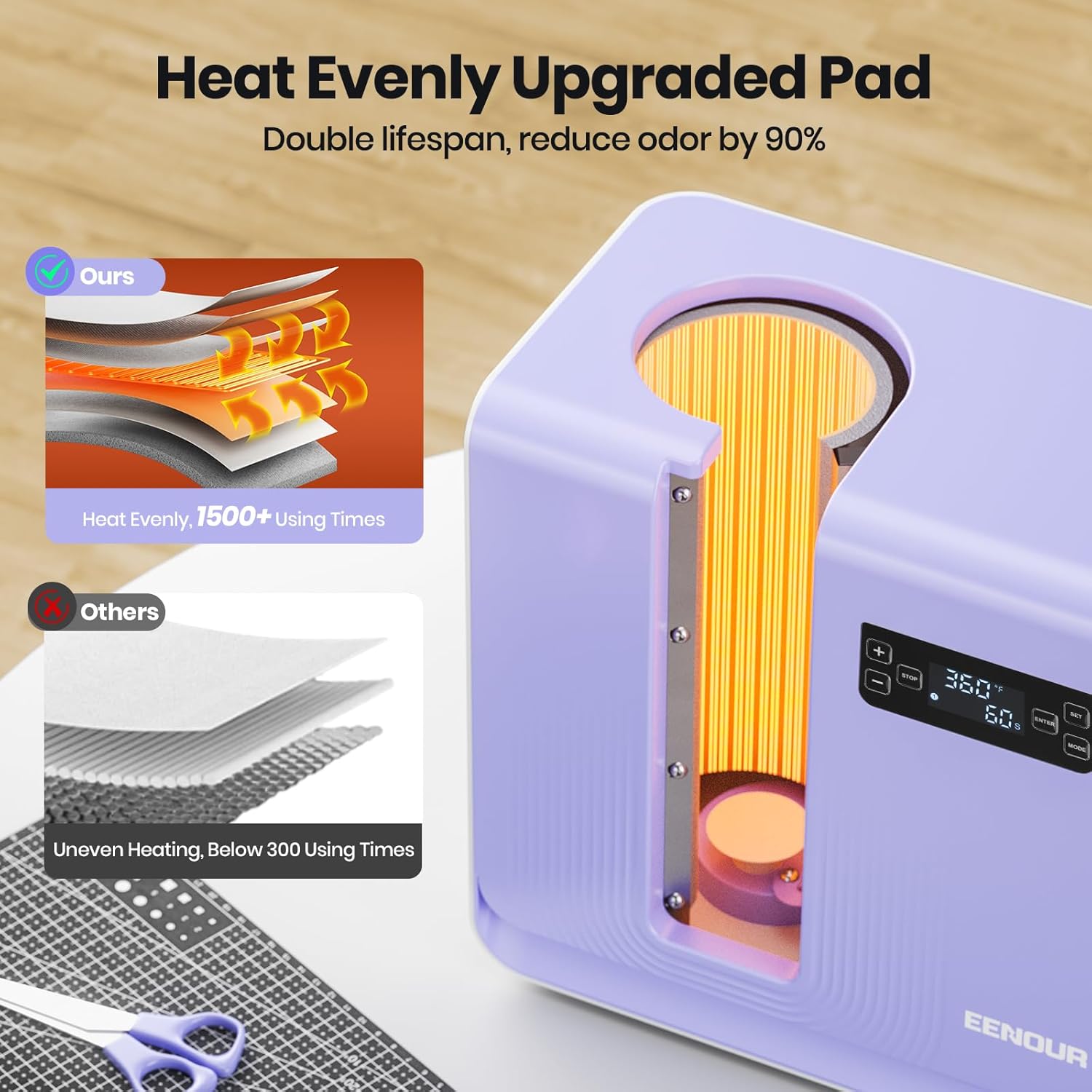 Fast and Even Heating: With an upgraded heating element the distribution density of the heating wire is 3 times that of others which can heat more evenly and accurately increasing the success rate by 70%. 3 layers of thickened silicone protection can double its lifespan with 90% less odor and is more suitable for people with odor sensitivity